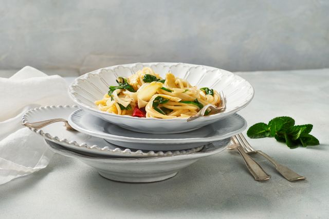 Der Klassiker aglio e olio erweitert um aromatisches Gemüse: Diese einfachen Spaghetti mit einer cremigen Spargel-Spinat-Sauce, Peperoncino und Minze sind Balsam für die Seele.