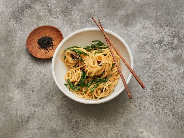 Zart, subtil und superelegant – das sind meine Assoziationen zu japanischer Küche. Doch manche Gewürzmischungen aus Japan haben auch ordentlich Wumms. Ein schönes Beispiel ist der Sieben-Gewürz-Pfeffer mit dem schönen Namen Shishimi Togarashi, ein anderes das Reisgewürz Furikake. Das schmeckt zwar wenig scharf, dafür aber umso aromatischer. Ich persönlich mag es besonders als Veggie-Booster, aber wenn man einmal angefangen hat Furikake zu verwenden, stellt sich schnell heraus, dass diese raffinierten Algen-Miso-Sesam-Karamell-Brösel auch bestens zu Reisnudeln, Sobanudeln, Grillspießchen, Fisch, Carpaccio, Eiern und sehr vielen anderen Gerichten passen.