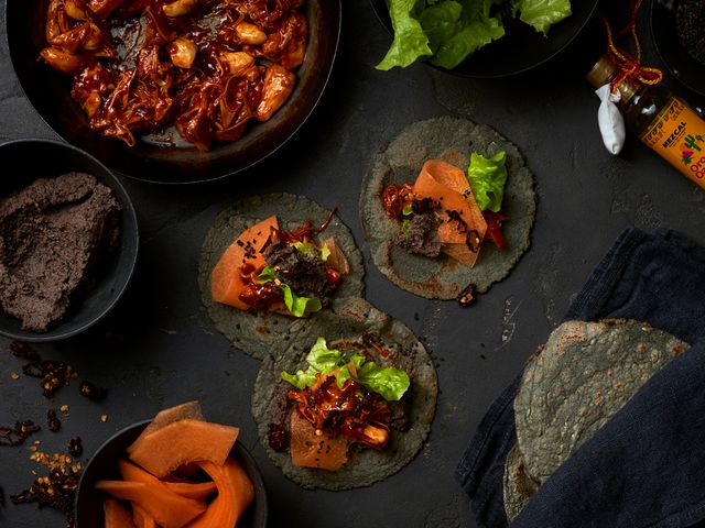 Tortillas mit Süßkartoffeln und Mandarinen-Vinaigrette