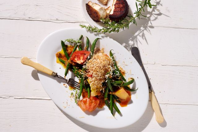 Bohnensalat mit Ricotta infornata und Sommertomaten