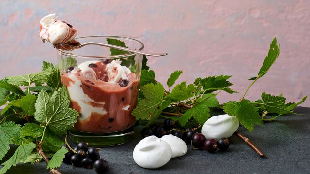Schwarze Johannisbeeren – kalt gerührt mit Baisers, Schlagsahne, Joghurt