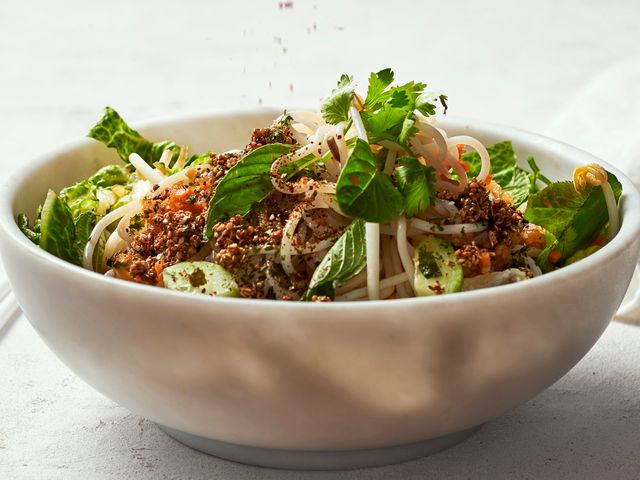 Soba heißt die Königin japanischer Nudeln. Sie besteht vor allem aus Buchweizen und eignet sich bestens für kalte, sommerliche Nudelgerichte. Ganz einfach geht zum Beispiel der japanische Klassiker »Zaru Soba« mit einer Sauce aus Mirin, Soja und Brühe und einer Garnitur aus Noriblatt, geriebenem Rettich und Frühlingszwiebeln. Buchweizen ist ein sogenanntes Pseudogetreide, es schmeckt nussig und aromatischer als viele echte Getreidesorten. Sein Mehl enthält nur leider keine Klebereiweiße, die uns die Herstellung von Teig aus Weizenmehl so einfach machen. Sobanudeln mit einem sehr hohen Anteil an Buchweizenmehl sind deshalb empfindlich, sie lösen sich leicht im Kochwasser auf und werden vorsichtshalber eher gesimmert als gekocht. Oder sogar gedämpft – was nur mit frischen Nudeln möglich ist.