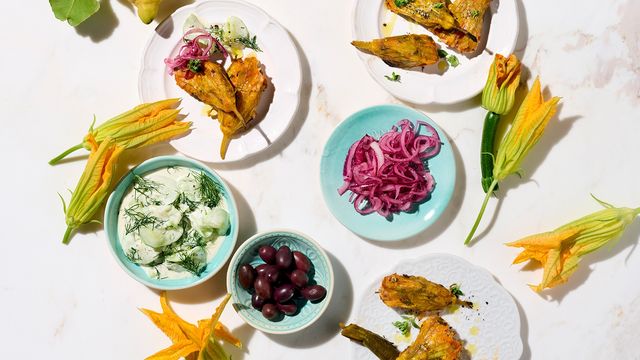 Kürzlich hat mir Arzu, eine australische Freundin mit zypriotischen Wurzeln – und riesigem Gemüsegarten am Yarra River bei Melbourne – ihr Rezept für Zucchiniblüten erklärt. Arzu füllt die Blüten mit Reis, ähnlich wie Sie es vielleicht von gefüllten Weinblättern kennen. Das Ergebnis sieht nicht nur sehr gut aus, die Blütenblätter werden semitransparent und ein ganz kleines bisschen knusprig. Außerdem schmecken sie sehr gut, eine echte Alternative zur italienischen Version. Der Knackpunkt im Rezept ist der Reis, der kommt nämlich roh in die Blüten und nimmt während der Garzeit viel Flüssigkeit auf. Es muss also gleich zu Beginn die passende Menge Brühe im Topf sein und je nach Herd kann es sein, dass Sie während der Garzeit nochmal etwas Flüssigkeit ergänzen müssen. Am wichtigsten sind natürlich die Blüten selber. Rund ums Mittelmeer gibt es sie günstig auch im Supermarkt, bei uns eher auf dem Wochenmarkt und weniger günstig – oder aus dem Garten.