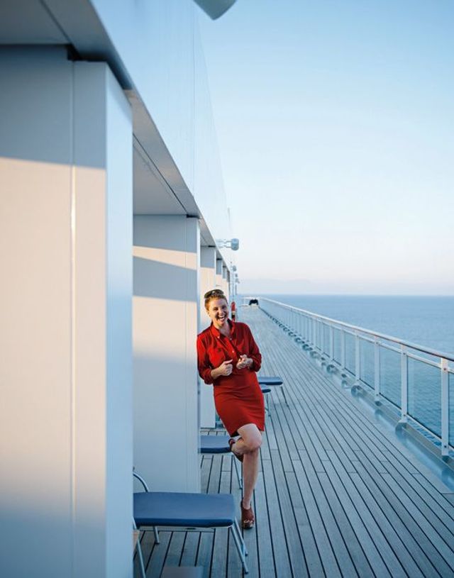 Annette Frier ist das dritte Mal auf See, zuvor einmal als Schauspielerin für Das Traumschiff, einmal zum Lesen auf einem anderen Kreuzfahrtschiff. Nicht alle ihre Kollegen reden gern über ihren angenehmen Nebenjob. Einigen ist der Luxus offenbar peinlich. Annette Frier nicht: »Man muss sich einlassen auf den Wahnsinn. Wer den Luxus nicht genießen kann, wird hier keinen Spaß haben. Nichts ist normal. Es gibt keinen Supermarkt, und alle Entscheidungen werden einem abgenommen. Jeder wird wie ein Star behandelt. Dieses Schiff ist eine große verschwenderische Verwöhnmaschine. Aber im Grunde ist doch das ganze Leben Verschwendung.«