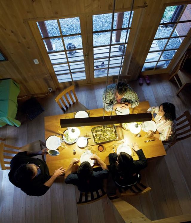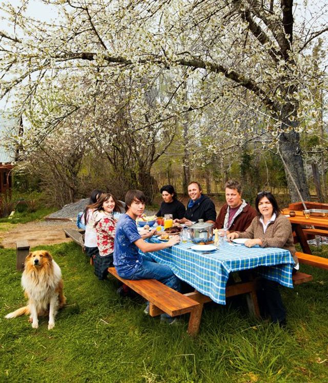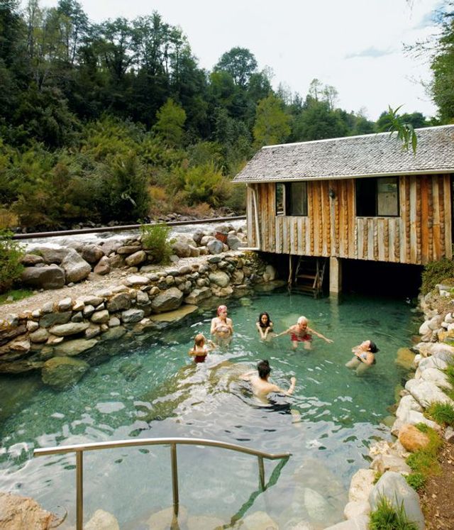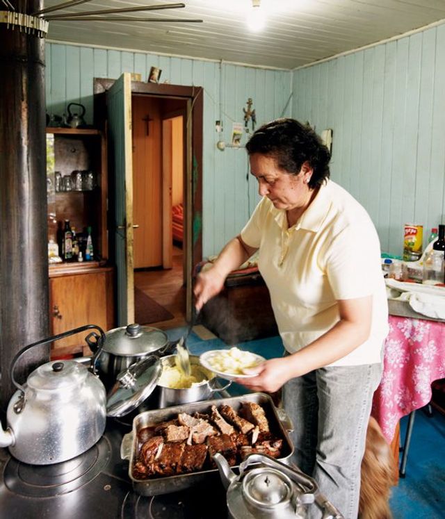 Zwei kleine Hütten hat Mathias für Gäste gebaut, die bei ihm Urlaub machen. Gegessen wird gemeinsam im Haus mit der Familie: Asado al Palo, Fleisch, das am Stock über dem offenen Feuer gegrillt wird, mit scharfer Sauce aus Zwiebeln, Tomaten und Koriander, Pevre genannt, Forellen aus dem angrenzenden Fluss, Seehecht aus dem nahen Pazifik. Man spricht Deutsch und Spanisch bei Tisch, manchmal auch Englisch, wenn Amerikaner in einer der beiden Hütten zu Gast sind. Mathias’ Frau Karin ist gebürtige Chilenin, aufgewachsen in Santiago, sie gab ihm Spanisch-Unterricht in Frankfurt, so lernten sich die beiden kennen. Pucón im Süden suchten sie sich aus, weil sie es für die schönste Gegend in ganz Chile halten.