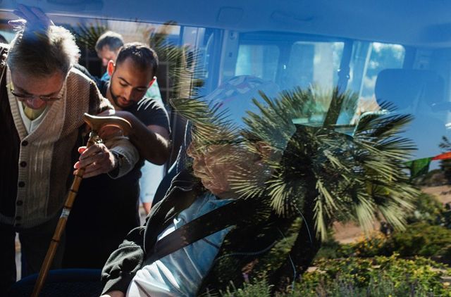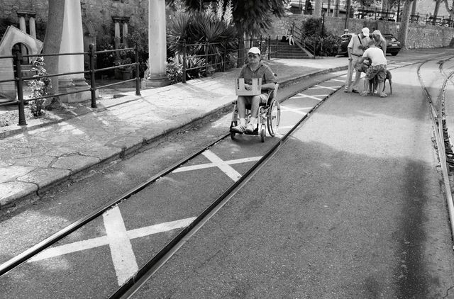 Alle anderen knattern derweil mit der Holz-Eisenbahn von 1912 im Stakkato der Metallräder nach Sóller. Mit der Trambahn danach zum Hafen. An der Haltestelle muss es schnell gehen. Dulitz und Olguner arbeiten von unten nach oben, von der Straße ins Abteil: Der eine lupft raus, der andere zieht hinein, Schulz verstaut die Rollstühle. Zwei spanische Schaffner eilen herbei, wollen helfen. Irgendwie. Sie wirken nervös, wedeln mit den Armen. Hinter der Tram stauen sich schon drei weitere Wagen.