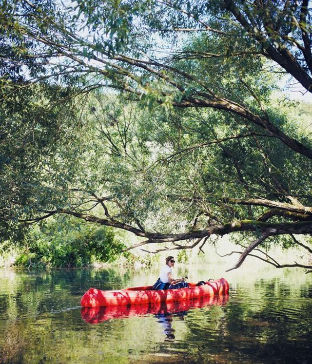 Wir paddeln und paddeln. Ziehen vorbei an Entenfamilien, springenden Fischen, silbergrünem Schilf, Wasserlilien, Libellen in Blaumetallic, Feldahorn und Trauerweiden, deren Äste idyllische Torbögen formen. Ein Wasserreiher flüchtet, dann liegt rechts die Burg Pappenheim. Das ist mehr als die halbe Strecke für den ersten Tag.