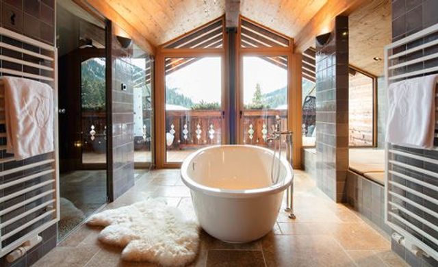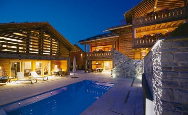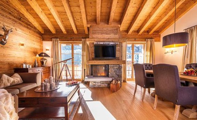 So luxuriös kann ein Chalet-Urlaub sein: Hier muss niemand früher aufstehen, um den anderen das Frühstück zu machen. Oder vorzeitig von der Piste aufbrechen, wegen des Abendessens. Das (und vieles mehr) erledigt ein Personal Assistant. Er sorgt für das Buffet am Morgen und macht das Wohnzimmer am Abend zum Restaurant. Und den Weinkeller füllt er auch auf. Dazu gibt es Sauna, Spa, Kamin. 18 Personen zahlen ab 3675 Euro pro Tag, macht etwa 204 Euro pro Person inklusive Personal Assistant, Reinigung und Frühstück. Da das Chalet teilbar ist,