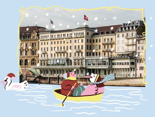 Der Basler Architekt Jacques Herzog höchstselbst hat die Renovierung eines Seitenflügels des fast 350 Jahre alten Hauses in die Hand genommen. Das Spa ist japanisch gehalten, und auch die neuen Suiten muten asiatisch an: weiß lackierte Decken, hängende Schränke, die Zimmerecken abgerundet, an den Wänden empfindliche Stofftapeten, mit rotem Samt bezogene Polstermöbel – auch in der 7,30 Meter hohen Zigarrenlounge, die mit lavaähnlichen Keramikkacheln an den Wänden einer Schlosskapelle ähnelt. Der Architekt und der Hotelbesitzer rauchen da mitunter gemeinsam. Hinter Glas sieht man die Köche des Drei-Sterne-Restaurants bei ihrer Handarbeit. Die Brasserie serviert Zürcher Geschnetzeltes. Die Bar am Rheinufer beschäftigt während der Art Basel einen Türsteher.