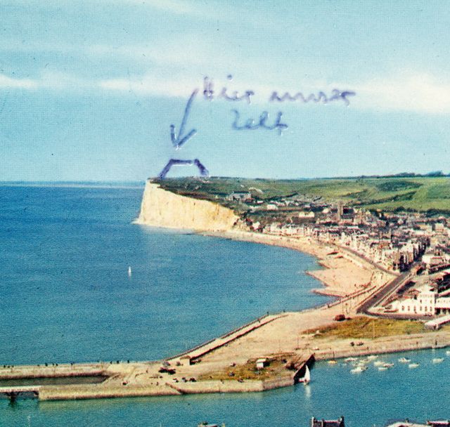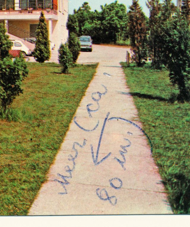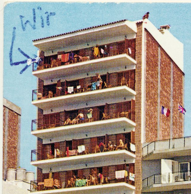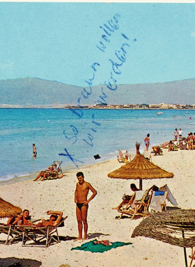 Der Schweizer Künstler Alberto Vieceli hat Ansichtskarten gesammelt, auf denen Menschen sich markiert haben, und ein ganzes Buch daraus gemacht: Hello, we are here. Dem Buch sind die Karten auf diesen Seiten entnommen. Aber warum diese Markierungen? Ich habe immer Bücher geliebt, in denen vorn eine Karte abgebildet ist, am besten eine Schatzkarte, und der Schatz ist markiert mit einem Kreuz. Wenn man seinen Standort auf einer Ansichtskarte mit einem Kreuz markiert, ist man selbst der Schatz. Oder der Schatz ist der Ort, an dem man ist. Meiner Oma wollte ich zeigen, guck mal, hier bin ich gerade. Damit sie wusste – das war eine gängige Formulierung in unserer Familie –, wo sie »hindenken« sollte: »Schick mir mal eine Postkarte, dann weiß ich, wo ich hindenken soll.« Und vor meinem Schulfreund wollte ich damit angeben, an was für einem tollen Ort ich war. Kann sein, dass mir bei der Karte an ihn das Kreuz daher ein bisschen weiter nach links verrückt ist, näher an den Nordseestrand. Vielleicht fünf Millimeter, also zehn Minuten zu Fuß.