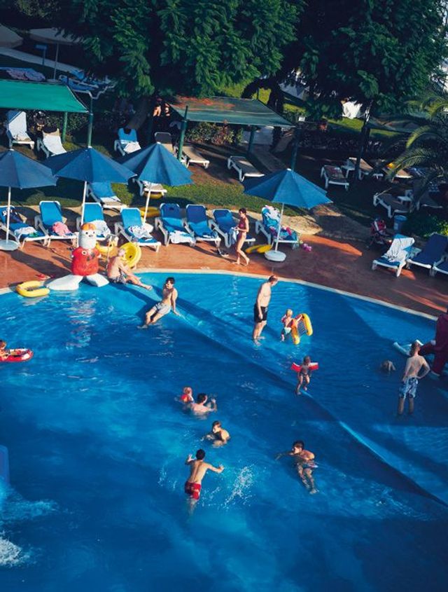 Im Laufe der nächsten Tage sieht man immer wieder Jugendliche nach dem Frühstück oder Mittagessen im Stechschritt oder sogar Dauerlauf zum Platz eilen – bloß nicht zu spät kommen. Und während im Pool der Rutschen-Kontest ausgetragen wird und fürs clubeigene »Oktoberfest« Bierbänke und palettenweise plastikverschweißte Maßkrüge auf die Wiese gefahren werden, üben Mädchen unter Bäumen ihre Tanzschritte. Detlef Soost spielt in den Pausen Fußball mit seinem Sohn Carlos, sechs Jahre alt, oder liegt mit Carlos und seiner Tochter Chani, sieben, am Pool. Hin und wieder werfen Gäste Blicke rüber – »Schau mal, da ist er!« Oder sie stoßen sich morgens beim Frühstück an – »Guck mal, er gönnt sich Rühreier. Passt das zu seinem Diätprogramm?« Vor allem die erwachsenen Kursteilnehmer wechseln auch mal ein paar Sätze mit ihm, sprechen über ihren Muskelkater. Das geht einfach und verbindet sofort, vor allem, wenn sie hören, dass auch Soost welchen hat.
