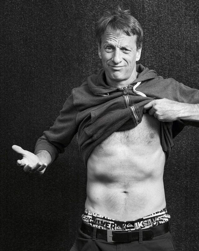 Vor dem Interview möchte Tony Hawk kurz die Halfpipe ausprobieren, in der er später eine Show zur Eröffnung der X-Games in München fahren soll. Hawk, 45 Jahre alt, steigt die steile Treppe zur vier Meter hohen Rampe hinauf, zieht seinen Helm auf, stellt das Skateboard an den Rand der Vertikalen, fährt hinein. Auf der anderen Seite der Halfpipe fliegt er zwei Meter hoch in die Luft, landet sicher, zeigt dann eine 540-Grad-Drehung mit dem Brett und andere schwer zu erklärende Skateboard-Sprünge. Die Zuschauer jubeln, der alte Mann kann es noch. Schon mit 14 wurde er Skateboard-Profi, mit 31 schaffte er als Erster eine 900-Grad-Drehung in der Halfpipe, zweieinhalb Drehungen in der Luft, dabei ist er mit 1,91 Metern recht groß für so ein kleines Skateboard. Er steht in einer Reihe mit Pelé, Michael Jordan, sogar Muhammad Ali. Hawk hatte großen Anteil daran, dass Skaten zur weltweiten Jugendkultur wurde. Heute wird sein Vermögen auf 100 Millionen US-Dollar geschätzt, er ist Unternehmer - und als solcher versteckt er gern Skateboards in Gebüschen und ruft per Twitter seine mehr als drei Millionen Follower zur Suche auf. Der Mann ist vierfacher Vater, sein gefühltes Alter ist: 16.
