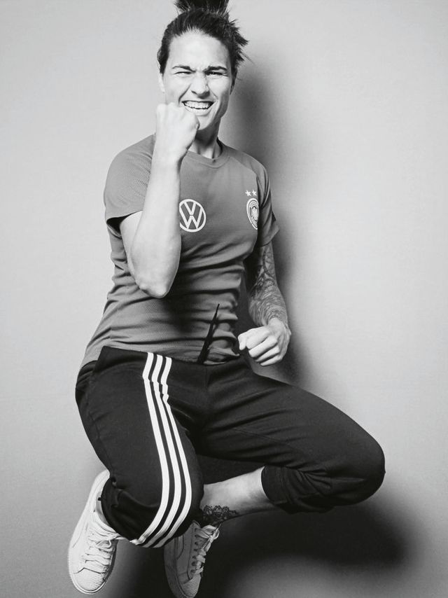 Kein Durchkommen? Dann geht der Ball zu Marozsán. Sie spielt die Pässe, mit denen keine rechnet, dribbelt ihre Gegnerinnen auf engstem Raum aus, räumt dabei beinahe jeden Titel ab, den es zu gewinnen gibt, und lässt sich von nichts aus der Ruhe bringen. Dahinter steckt natürlich harte Arbeit: Dzsenifer Marozsán, die vier Jahre alt war, als ihre Eltern aus Ungarn ins Saarland zogen, musste ihrem fußballbegeisterten großen Bruder zum Bolzplatz nachschleichen, bis er sie irgendwann gern mitnahm. Sie trainierte dann bis zur D-Jugend in einer Jungenmannschaft, spielte für den 1. FC Saarbrücken, für den 1. FFC Frankfurt und wechselte nach Frankreich zum Starensemble von Olympique Lyon. Über das Training dort sagt sie: »Wenn du bei siebzig Prozent bist und dann das Training beginnst, wirst du überrollt.« Mit diesem Team gewann Marozsán zuletzt dreimal hintereinander die Champions League. Was ihr fehlt, ist der Weltmeistertitel. Bei der WM im vergangenen Jahr verletzte sie sich im ersten Gruppenspiel. Deutschland schied gegen Schweden im Viertelfinale aus. Anfang März geht es für die DFB-Auswahl in Portugal um den Algarve Cup. Dort wird Marozsán wohl von Anfang an auf dem Platz stehen – im ersten Spiel gegen Schweden.