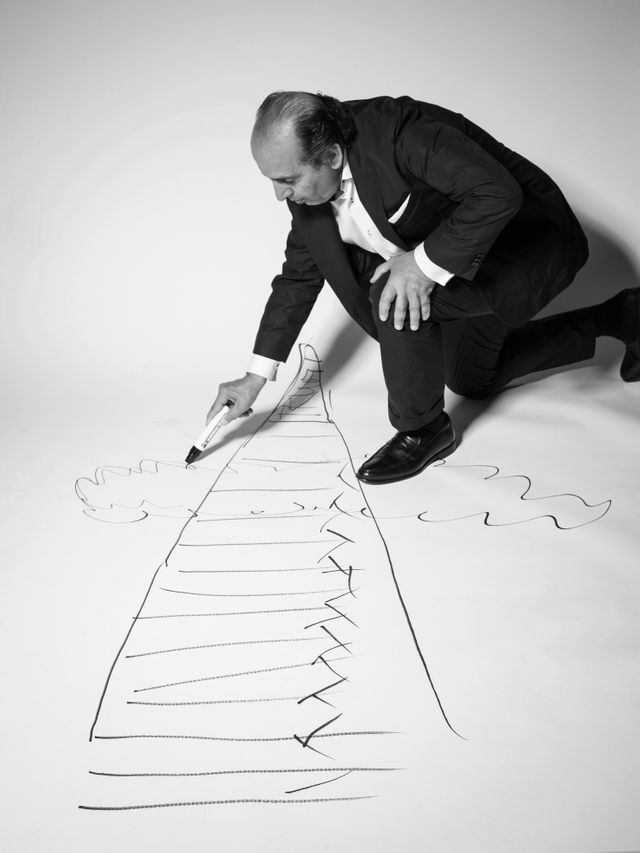Hadi Teherani war sechs Jahre alt, als er nach Deutschland kam. Eigentlich hatten seine Eltern bloß Reiselust, und der Rückflug nach Teheran war auch schon gebucht, als es dann aber hieß, die Schule in Deutschland sei kostenlos, blieb die Familie einfach hier. Als Star-Architekt und Designer hat Teherani seine neue Heimat inzwischen geprägt – etwa durch die Kranhäuser in Köln oder den Berliner Bogen und das Dockland in Hamburg, zwei gigantische und extrem schicke Bürogebäude. Auch international ist Hadi Teherani für seine Konstruktionen aus Glas und Stahl bekannt, seine Arbeiten sind unter anderem in Moskau, Mumbai, Teheran, Dubai und Abu Dhabi zu finden. Wichtig ist ihm, dass ein Gebäude nicht nur eine Funktion erfüllt, sondern ein Gefühl, eine Stimmung vermittelt. Als Architekt sei man nur dann gut, wenn man »gleichzeitig Ingenieur, Jurist, Künstler, Kaufmann und Dirigent ist«, hat er mal gesagt. Bei unseren Fotoaufnahmen spricht Teherani leise und macht einen fast schüchternen Eindruck: ein feiner, moderner Mann, der lieber nach vorn als zurückschaut. Er selbst wohnt direkt an der Hamburger Alster, in seinem Teich schwimmen Koi-Karpfen mit großen Namen, zum Beispiel Le Corbusier und Mies van der Rohe.
