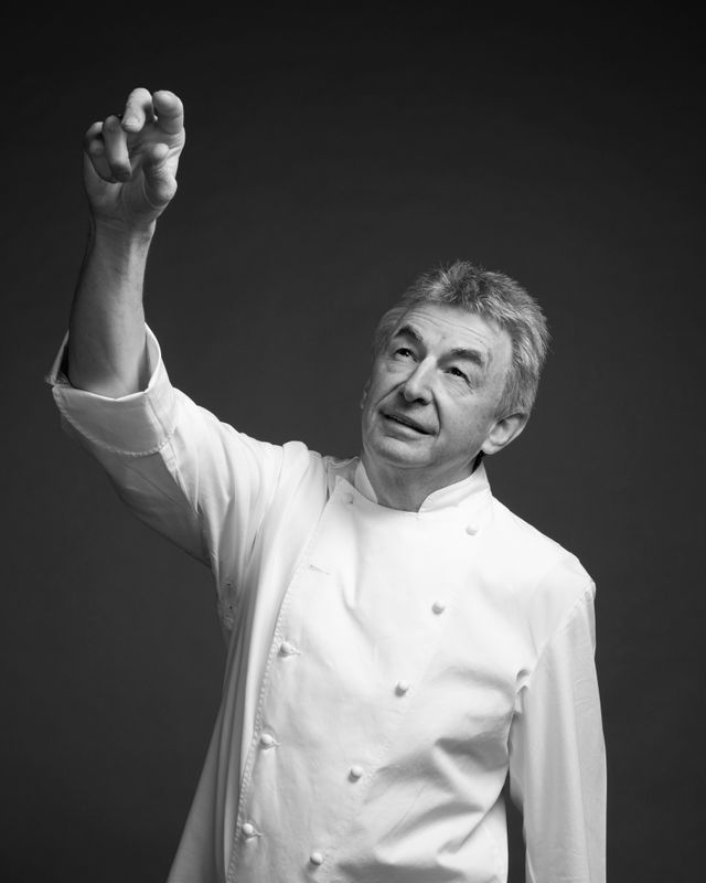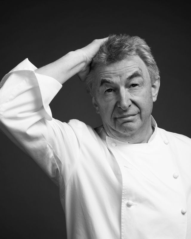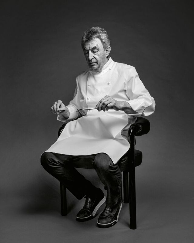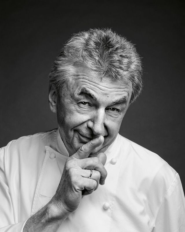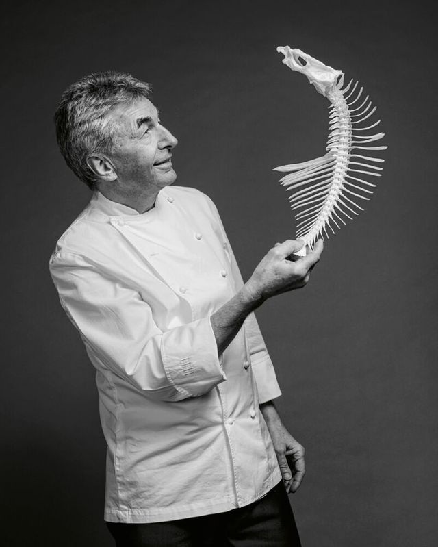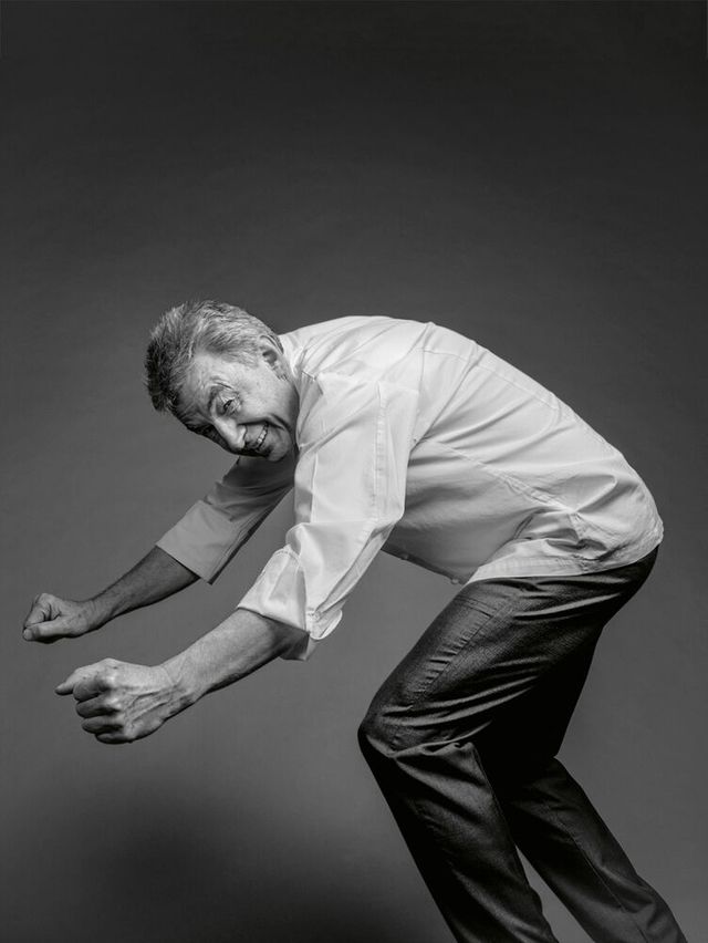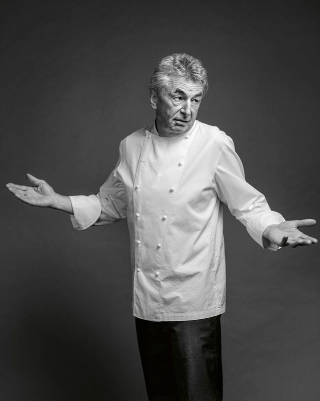29 Jahre, so lange hat Hans Haas im Münchner Restaurant »Tantris« gekocht und zwei Sterne gehalten. Haas steht für Konstanz, er blieb seinen Prinzipien treu, als um ihn herum Küchenmoden kamen und gingen. Die Grundprodukte sind ihm das Wichtigste, am liebsten aus der Region, er möchte ganz genau wissen, was das Gemüse oder Tier erlebt hat, bevor es in seiner Küche landet – Rind, Kalb oder Hirsch übrigens ganz: Hans Haas ist einer der Letzten, bei dem ein Koch noch das Zerwirken lernen kann. Zu seinen Klassikern gehören abenteuerliche Gerichte wie Kalbskopf in Ciabattabrot, aber auch weniger abenteuerliche wie Lauchpüree mit Lachs und brauner Butter. Wollte er eine Frau verführen (möchte er nicht, er ist schon ewig und glücklich verheiratet, er beantwortet dem SZ-Magazin die Frage trotzdem), würde er ihr das servieren. Dafür blanchiert Haas nur die grünen Enden des Lauchs, die sonst nicht verwertet würden – was ihn schon immer gestört hat. Am Wochenende fahren Hans Haas und seine Frau mit den Rädern in die Berge, manchmal hängt sie ihn ab. Das trifft ihn hart, sagt er. Bald möchten sie die großen Touren fahren. Und er will aus Fischkarkassen Kunst machen – falls sich jemand fragt, was das letzte Bild bedeutet.