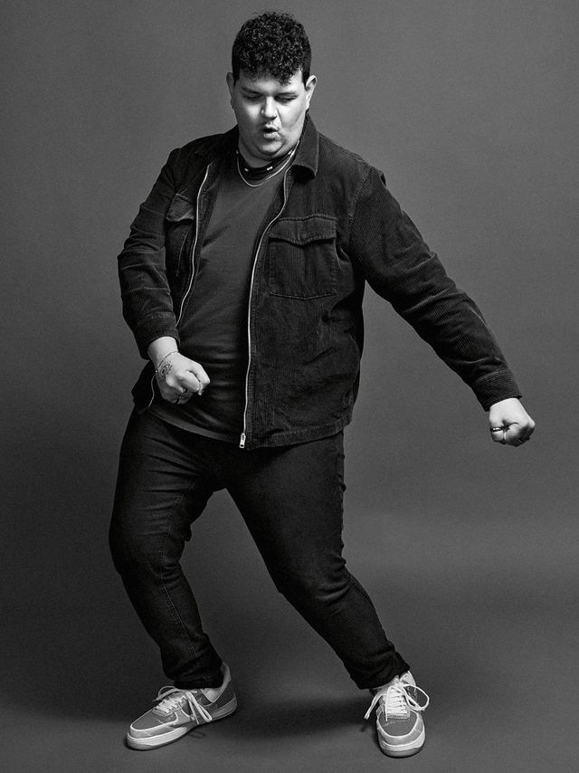 Gut, Imageberatung für den Bundespräsidenten ist auch kein Spaß. Aber als deutscher Kandidat beim Eurovision Song Contest anzutreten, ist vielleicht die noch undankbarere Aufgabe. Jedes Jahr wieder große Aufregung, jetzt aber! Diesmal erster Platz! Aber nun, die Tradition will, dass »wir« da entweder a) schlecht abschneiden oder b) superschlecht (abgesehen von Nicole und Lena, gefühlte hundert Jahre her). Jetzt versucht Isaak Guderian sein Glück am 11. Mai beim ESC in Malmö, er geht mit dem Song Always On The Run ins, äh, Rennen. Aber der Mann hat die richtige Statur, um einiges auszuhalten, und er hat auch das nötige Seelenkleid. »Da sehen mich 250 Millionen Menschen, ich habe nichts zu verlieren«, sagt er bei unserem Fototermin. Guderian ist auf die angenehmste Weise mit sich im Reinen, sehr lebendig, gern mal ein bisschen laut, einer, der über sich lachen kann. Gut geerdet. Mit 18 schmiss er die Schule, um von der Musik zu leben, spielte auf der Straße, trat auf Kleinstfeiern auf, nahm an Wettbewerben teil, die komplette Ochsentour. In der Corona-Zeit plötzlich Hartz IV, dann alles noch mal von vorn. Das härtet ab. Heute lebt Guderian mit Frau und zwei Söhnen in Westfalen, er macht den Eindruck, dass ihn nicht viel schrecken kann. Gut möglich, dass er tatsächlich genau der Richtige ist für das große Wettsingen.
