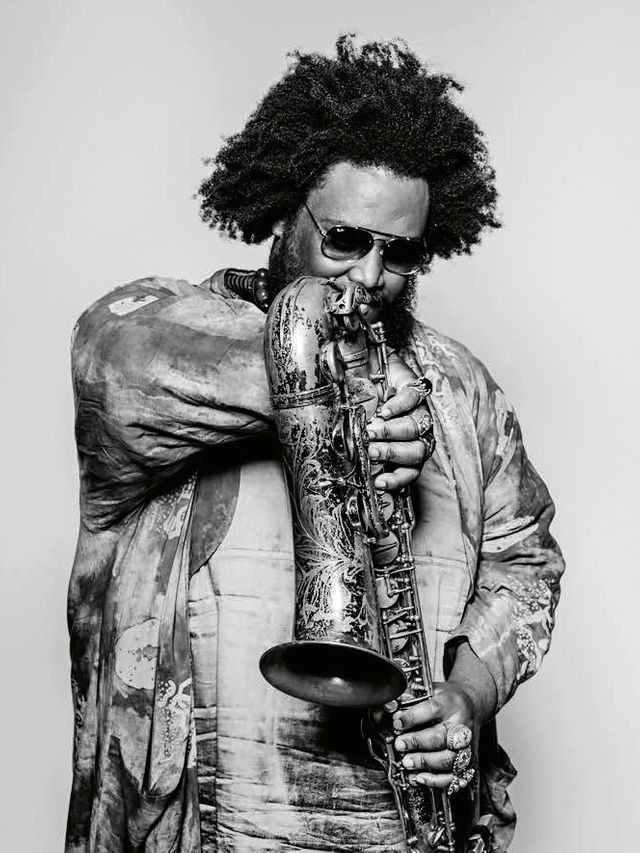 Beim Fototermin in einem Hamburger Hotelzimmer streift Kamasi Washington mit seiner Haarpracht fast die Zim-merdecke. Der 37-jährige Jazzmusiker ist eine imposante Erscheinung, optisch wie musikalisch: in bunte afrikanische Gewänder gehüllt und mit ungewöhnlichem Schmuck behängt, ein Hüne, dessen 2015 erschienenes Debüt The Epic fast drei Stunden dauerte und bejubelt wurde wie kaum ein anderes Jazzalbum der vergangenen Jahrzehnte. »Meisterwerk«, urteilte der Kollege vom SZ-Feuilleton, und die New York Times fragte, ob man endlich die ersehnte Figur gefunden habe, die den Jazz aus der »Wüste der Obskurität« führen könne, wo immer die liegen mag. Kamasi Washington wuchs im Ghetto von Los Angeles auf, als dort der Gangsta Rap entstand; nachts hörte er Schüsse und Sirenen, tagsüber übte er Saxophon. Später spielte er eine Weile in der Band des Rappers Snoop Dogg, doch nach den Shows machte er nicht etwa Party, sondern zog weiter in kleine Jazzclubs und blies dort bis zum Morgengrauen. Diese Hingabe an die Musik ist auch auf seinem gerade erschienenen Album Heaven & Earth zu spüren, das auch schon wieder zweieinhalb Stunden lang ist. Bei manchen Musikern ist eben alles ein paar Nummern größer als bei anderen.