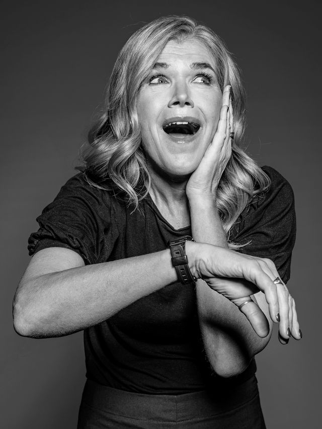 Spontaneität muss gut vorbereitet sein. Maximal lockere Wirkung bei maximal präziser Kontrolle, diese Kunst beherrschen wenige so wie Anke Engelke. Ob sie mit Bastian Pastewka rumblödelt oder in der Sendung mit dem Elefanten die Welt erklärt, ob sie moderiert oder in Filmen spielt oder, wie jetzt gerade, in Bahn-Werbespots zu sehen ist – immer wirkt sie total spontan. Wie gründlich das überlegt sein will, zeigt sich beim Fototermin für Sagen Sie jetzt nichts. Die ersten Fragen mag sie nicht so recht, sie findet nicht sofort den richtigen Blick, noch ist sie nicht ganz drin, schnell weiter, nächste Frage, na komm. Als der Fotograf anbietet, man könne ja alles ruhig noch ein bisschen besprechen, reagiert sie deutlich: Auf keinen Fall, sie macht das schon, ihr muss hier niemand was erklären. Und dann findet sie irgendwann rein, wird locker. Oder weiß eben, wie man Lockerheit spielt. Ihre Königsdisziplin: dass man nie erkennen kann, wo genau da die Grenze ist. Diese Fähigkeit hat sie zu einer ziemlich einmaligen Figur in Deutschland gemacht. Und jetzt wieder ein Hakenschlag: Der Film Dann passiert das Leben, der am 6. November im Kino anläuft. Ein Drama, in dem sie und Ulrich Tukur ein altes Ehepaar spielen, das alle Illusionen verliert. Kein lockeres Thema. Und so was kann sie eben auch.