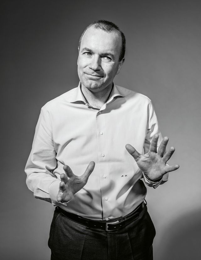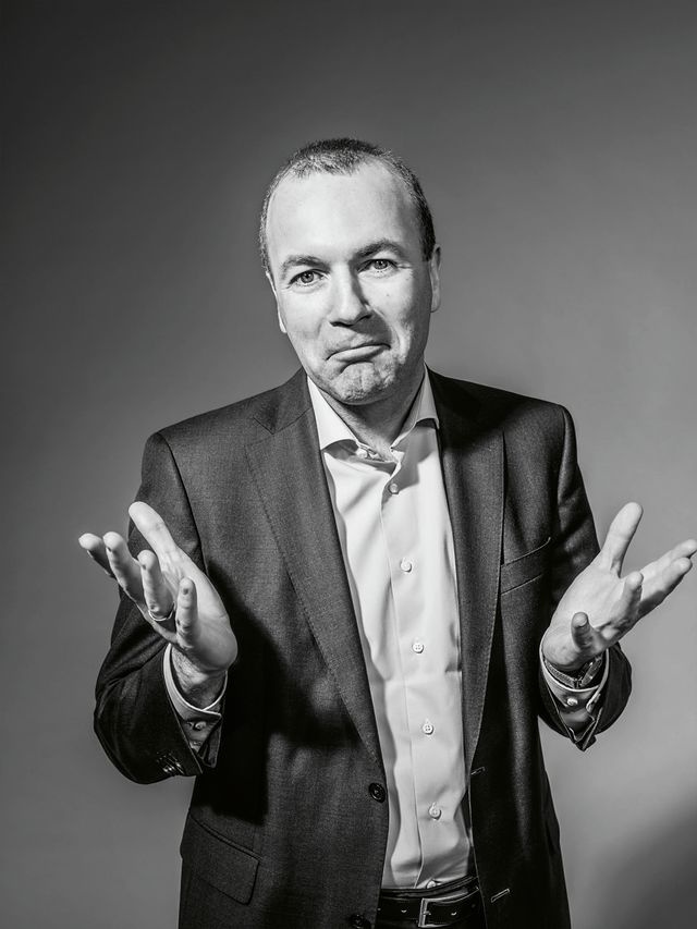 Bei der CSU hört man immer wieder, Bayern sei die Heimat, Europa die Zukunft. Für niemanden gilt das momentan mehr als für Manfred Weber. Bei der Europawahl Ende Mai tritt der Niederbayer als Spitzenkandidat der Europäischen Volkspartei (EVP) an. Präsident der EU-Kommission will er werden, damit wäre er der mächtigste Mann Europas. Vor Kurzem hat er einen Werbefilm für seine Kandidatur gedreht, darin sieht man ihn beim Kirchgang im heimischen Wildenberg, im Gespräch mit Senioren, als Gitarrist seiner Band »Peanuts«. Seine Assistentin sagt dem SZ-Magazin im Vorgespräch für den Fototermin, man sorge gerade dafür, dass der Chef so oft es geht zu Hause in Wildenberg schläft. Er werde noch oft genug in Europa unterwegs sein müssen. Was auffällt: Wie ruhig und souverän der Mann beim Sagen-Sie-jetzt-nichts-Interview agiert. Er lässt sich nicht aus dem Konzept bringen, nicht mal, als sein Assistent sich besorgt zu Wort meldet: Also diese Geste mit den drei Bier, na ja, die könne auch falsch rüberkommen, ob man die nicht lieber weglassen sollte? »Nix is’ schlimm an drei Bier«, sagt der Chef. Als Politiker ist Weber ein bisschen wie ein guter Nachbar: Niemand bekommt ihn mit, doch wenn es drauf ankommt, ist er hoffentlich da.