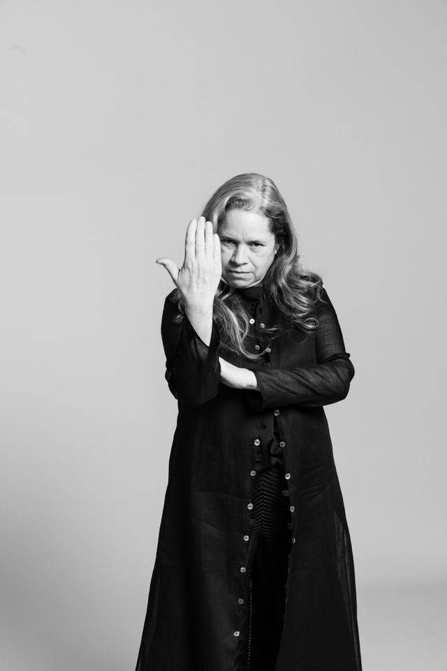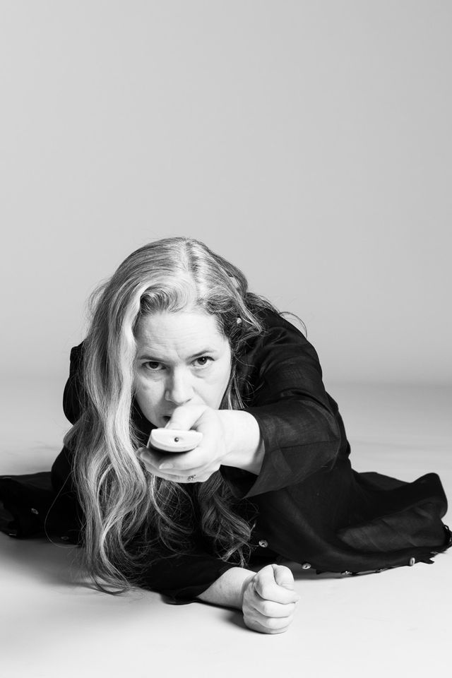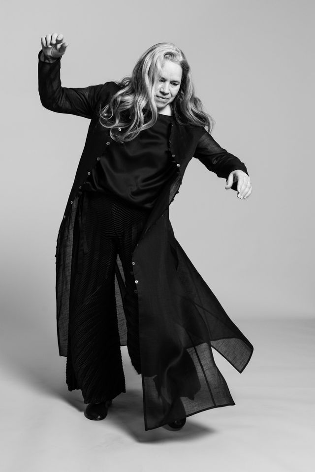 Es gibt Menschen, die fühlen sich beim Sagen Sie jetzt nichts-Termin wie zu Hause. Vor allem Leute vom Fernsehen: Alles klar, wo ist die Kamera, Licht passt, wunderbar, los geht’s. Und dann gibt es Menschen, denen die Idee erst mal etwas obskur erscheint. Fotos, ich? Die US-Amerikanerin Natalie Merchant steht seit vierzig Jahren auf der Bühne, aber fröhliche Posen waren nie ihr Ding. Schon als Sängerin der Folk-Pop-Band 10,000 Maniacs suchte sie eher nach dem Wahren, Schönen, Guten – auf den Spuren von Patti Smith, deren Klassiker Because The Night zum größten Hit der Band wurde. Und als Solistin erzeugt Merchant auf der Bühne sehr gern auch ganz verhaltene Momente. Mal einem Ton hinterherlauschen, mal eine melancholische Songzeile stehenlassen und abwarten, was sie mit den Zuhörern macht. Merchant-Konzerte können Andachten sein. Vor wenigen Wochen ist ihr neues Album Keep Your Courage erschienen, das erste nach sechs Jahren Pause. Und dann also diese Anfrage: Ob sie für so ein deutsches Magazin bitte mal ein paar Antworten nur in Bildern … ? Und siehe da, jetzt, mit fast sechzig Jahren, lässt sie sich auf den Spaß ein. Tanzt, lacht, legt sich sogar auf den Boden, dann verabschiedet sie sich mit einem leichten Kopfschütteln und einem Lächeln. Ungewohnt irdisch. Wie schön.
