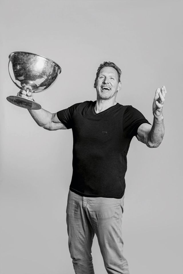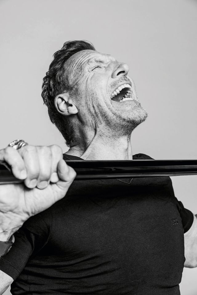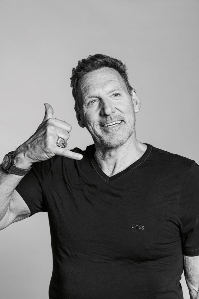 Es dauert nur ein paar Minuten, bis Ralf Moeller bei unserem Fototermin die Jacke abstreift. Tataa, da ist er! Die Rede ist natürlich von Moellers Bizeps, denn auch heute noch dreht sich beim 65-jährigen Schauspieler und Ex-Bodybuilder viel um Körper und Muskeln. Beim Schwimmen wurde er einst entdeckt, begann als 17-Jähriger in einer Muckibude in Herne zu trainieren, stemmte bis zu 30 Tonnen am Tag und pumpte sich bis ganz an die Spitze: 1986 kürte man ihn zum »Mr. Universum«, genau wie zuvor sein großes Vorbild Arnold Schwarzenegger, mit dem er seit Langem gut befreundet ist und inzwischen zusammen ins Fitnessstudio geht.