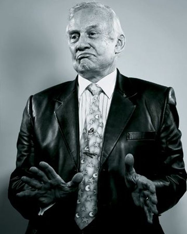 Ein bisschen Ehrfurcht merkt man den wartenden Kollegen schon an, wenn sie zum Interview mit Buzz Aldrin hereingerufen werden. Einige haben Poster mit Raumfahrtkapseln dabei und fragen nach einem Autogramm, ein paar Ältere erzählen aufgeregt, wo sie waren, als die Apollo 11 am Morgen des 21. Juli 1969 auf dem Mond landete. Wo Buzz Aldrin war, ist klar – und selbst, wenn das abgedroschen klingt: Der Mann ist eine lebende Legende. Seit Kurzem ist eine Doku der Apollo-Mission unter dem Titel Im Schatten des Mondes als DVD erhältlich. Zum Interview trägt Aldrin eine bunte Krawatte mit Monden und Sternen, in der Mitte grüßt ein Pilot aus einem Flugzeug. »Nennen Sie mich Buzz«, sagt er.