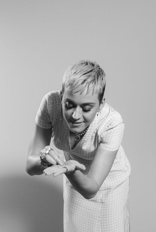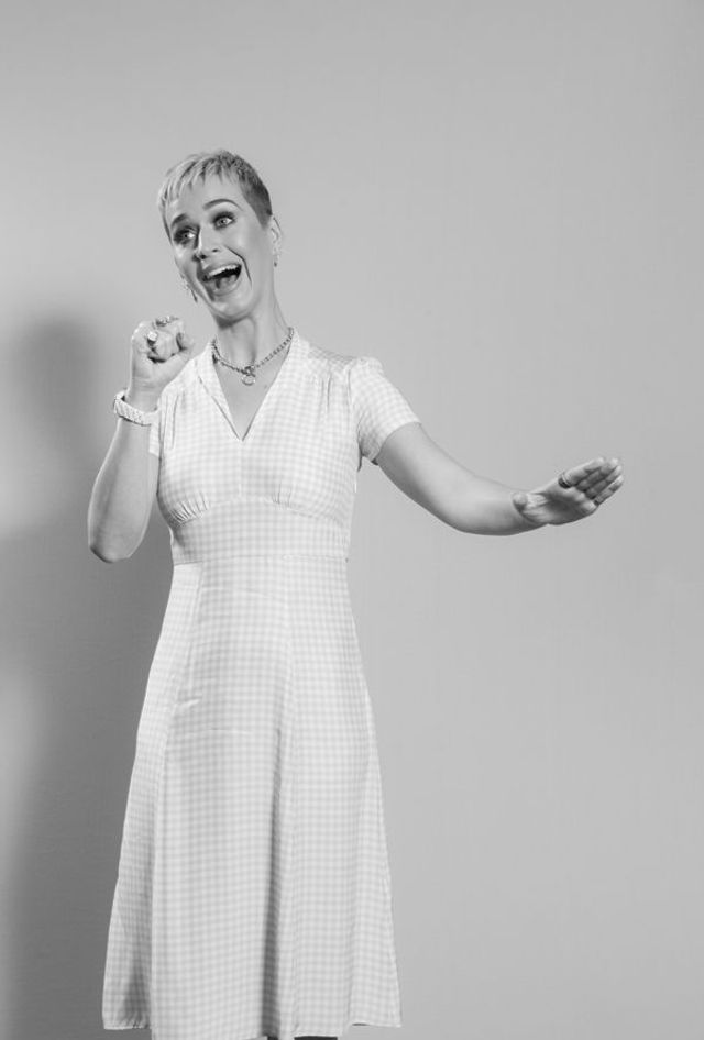 Es wird ja oft geklagt, es gebe keine richtigen Superstars mehr. Aber bitte: 126 Millionen verkaufte CDs, 72 Millionen Downloads, 99 Millionen Twitter-Follower – seit die Kalifornierin Katy Perry (bürgerlich Katheryn Hudson) mit I Kissed A Girl weltberühmt wurde, 2008 war das, ist sie dauernd in den Charts, in den Klatschspalten, auf den roten Teppichen. Sie begeistert Teenager, sie verzaubert Männer und wirkt auf Frauen wie eine coole Freundin. Noch dazu ist sie zuverlässig mit den tollsten Männern zusammen, erst mit dem Komiker Russell Brand, dann mit dem Musiker John Mayer, bis vor Kurzem mit dem Schauspieler Orlando Bloom. Wenn man sich einen Superstar ausdenken wollte: Superer geht’s nicht, oder? Wie zum Beweis erscheint sie beim Fototermin mit einem Trupp von acht Leuten: Bodyguard, Stylist, Assistentin, Assistent der Assistentin und so weiter. Und natürlich ist Perry in Eile, sie muss Promotion für ihr neues Album Witness machen, ständig ist so viel zu tun. Also kurzer Blick auf die Fragen, ein paar Augentropfen, los. Jedes Bild sitzt beim ersten Versuch. Danke, Händedruck, perfektes Lächeln in die Runde, bye-bye, take care. Und, wusch, ist sie wieder zur Tür hinaus, samt Hofstaat. Es ist, als stünde noch eine kleine Staubwolke im Raum, so schnell ist alles gegangen.
