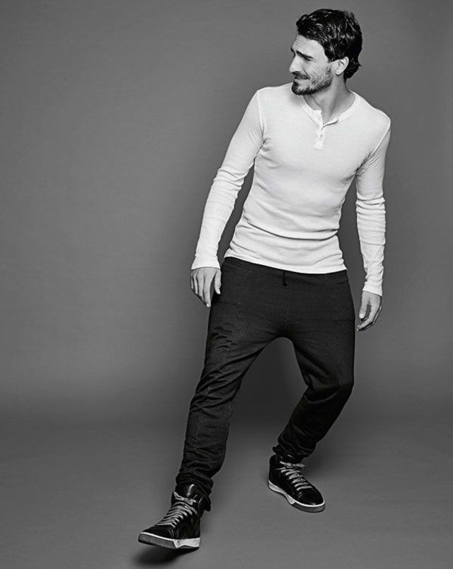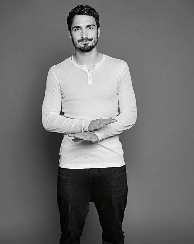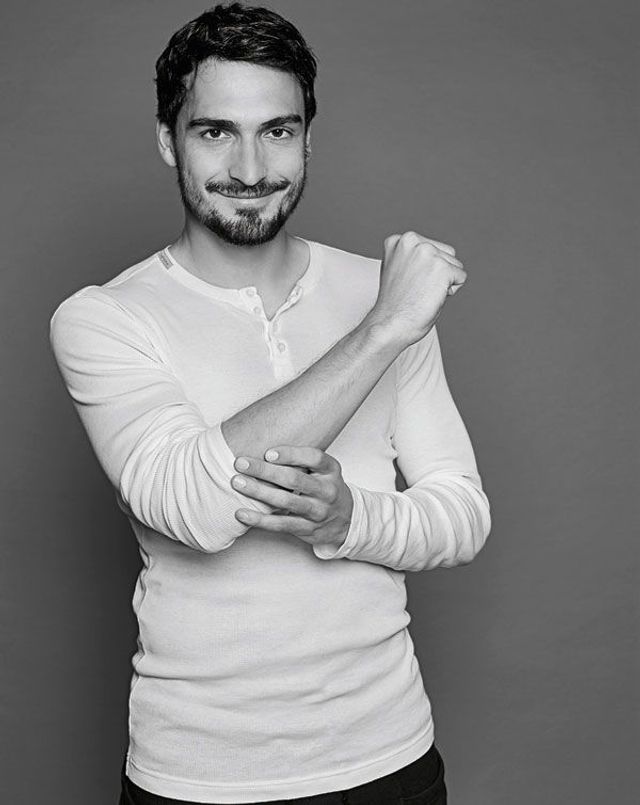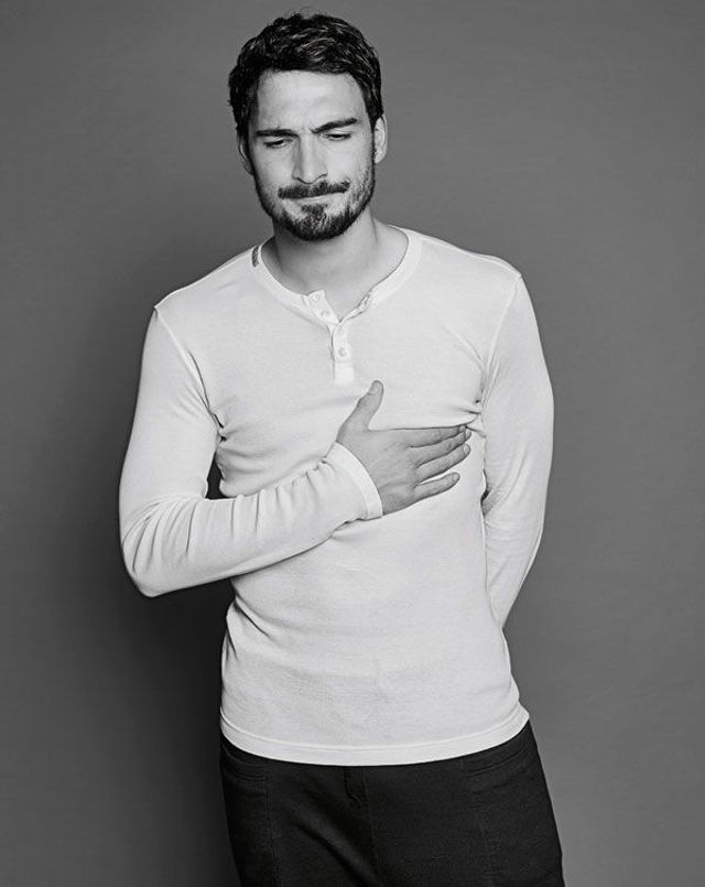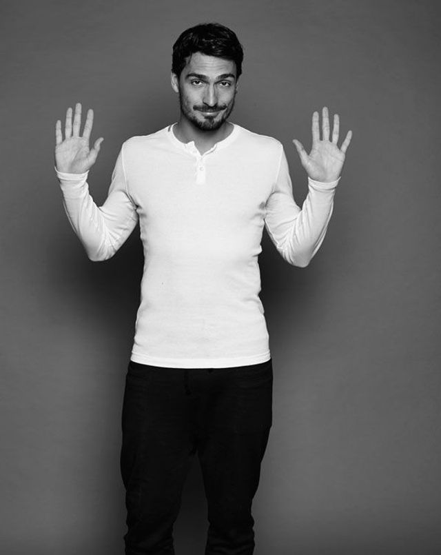 Mats Hummels ist der bestaussehende deutsche Nationalspieler seit Ottmar Walter. Darum kennen sich unser Fotograf und Mats Hummels auch schon: von gemeinsamen Werbeaufnahmen für ein Haarshampoo. Zu Ottmar Walters Zeiten hätten Nationalspieler natürlich niemals Werbung für Pflegeprodukte gemacht, aber Mats Hummels gehört zu einer ganz anderen Spielergeneration: Weicher als die Mannschaft von 1954, braver als 1974, smarter als 1990. Die Generation von 2014 ist auch deswegen Weltmeister geworden, weil den Spielern nicht mal ein 7:1 gegen Brasilien zu Kopf stieg. Mats Hummels gilt als der Vorzeigeprofi dieser Vorzeigeelf. Und wie erwartet erscheint er auf die Sekunde pünktlich zu unserem Termin im Fotostudio, »in der Jogginghose, damit ich alles mitmachen kann«. Anscheinend bereit zu jedem Quatsch, wirkt er dann doch wieder sehr bedacht. Er beantwortet selbst heikle Fragen – auch die nach dem ersten Outing eines aktiven Bundesligaspielers.