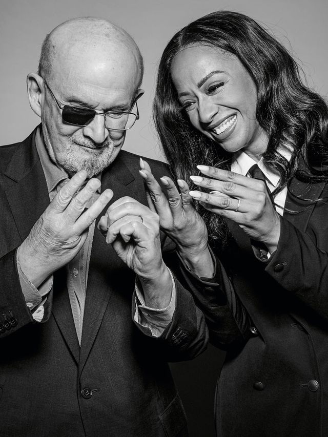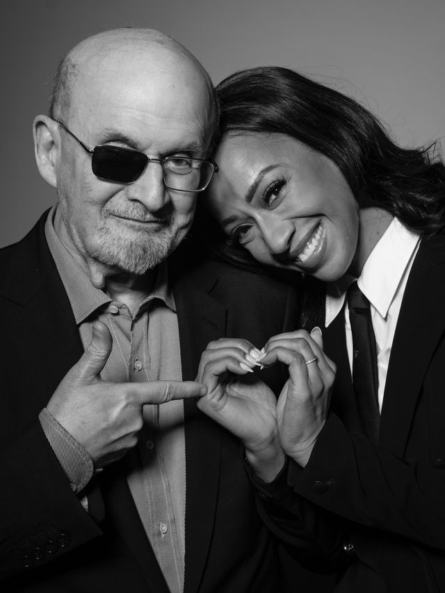 In einer Zeit, in der die Freiheit so sehr in Bedrängnis ist, wirkte diese gute Nachricht vom August 2022 umso tröstlicher: Der Plan des islamistischen Angreifers, den Schriftsteller Salman Rushdie bei einer Lesung im Staat New York mit einem Messer zu ermorden, ist nicht aufgegangen. Rushdies Stimme ist nicht erloschen, sondern lauter als je zuvor. Nach der Attacke rang er mit dem Tod, verlor ein Auge, hat Narben an Körper und Seele erlitten, doch er überlebte, quälte sich durch eine lange Rekonvaleszenz zurück ins Leben und schrieb ein Buch darüber, das kürzlich erschien. Knife heißt es, Messer, und glaubt man dem Autor, ist dieses Memoir seine »Waffe« gegen sein Trauma und gegen die Mächte der Finsternis. Ein Vierteljahrhundert lang hatte Rushdie der Fatwa, dem immer wieder erneuerten Mordaufruf der religiösen Führung Irans, getrotzt und zuletzt ein relativ freies Leben geführt. Knife erzählt vom jähen Ende dieser Sicherheit, aber auch vom persönlichen Triumph, Hass mit Kunst zu kontern. Ein Schlüssel dazu war Eliza Griffiths. Rushdies Buch ist auch eine Liebeserklärung an seine Frau, ohne die er all das nicht durchgestanden hätte, wie er sagt, die ihm anfangs verbot, in den Spiegel zu sehen, die ihm nicht von der Seite wich. Seinem Wunsch, sie dabeizuhaben bei unserem Fototermin, sind wir sehr gern nachgekommen.