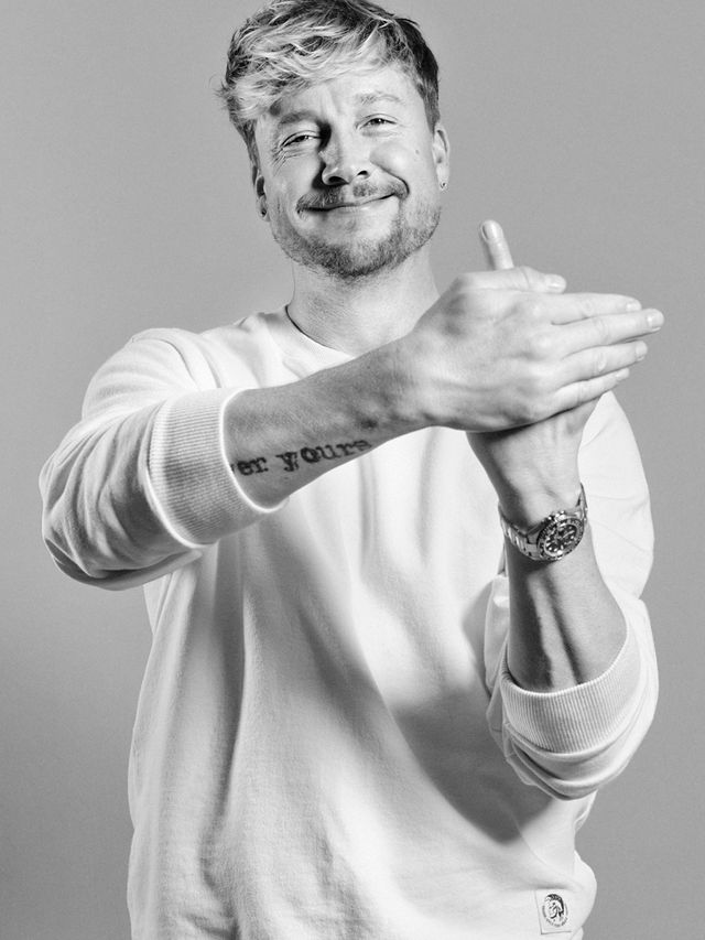 Er hätte auch in der Jury der Castingshow The Voice of Finland sitzen können, aber Samu Haber wollte in Helsinki, wo er herkommt, noch in Ruhe Klopapier kaufen können, hat er mal gesagt. So kommt es, dass der Rockstar aus Finnland seit Jahren immer wieder in der Jury von The Voice of Germany sitzt. Haber wuchs mit zwei Geschwistern bei der Mutter in Helsinki auf: »Ich denke, alleinerziehende Mütter sind die coolsten Menschen dieser Erde«, hat er gesagt. 1992 gründete er die Band Sunrise, 1998 ging er für drei Jahre nach Spanien, nach seiner Rückkehr und der Umbenennung der Band in Sunrise Avenue ging es mit melodiösen Rocksongs steil bergauf: Bis heute hat die Band knapp drei Millionen Tonträger verkauft, ihr jüngstes Album stieg auf Platz eins der deutschen Charts. Jetzt, mit 44, hat Haber seine Biografie veröffentlicht, die ebenfalls Platz eins erreichte, nur eben in der Spiegel-Bestsellerliste. Sie heißt wie die Tätowierung auf seinem rechten Unterarm: Forever Yours. Das hat er sich mal für eine Frau stechen lassen. Heute soll der Liebesschwur dem Publikum gelten. »Alles war gleichzeitig immer Glück und Qual«, schreibt er in seiner Biografie über die Zeit mit der Band, obwohl man den Eindruck hat, dass – zumindest bei ihm – das Glück überwog.
