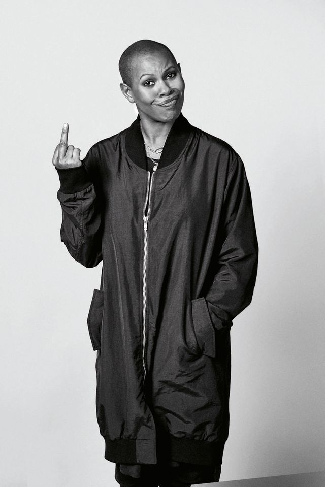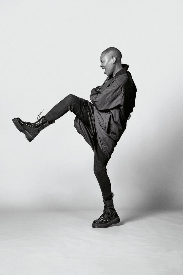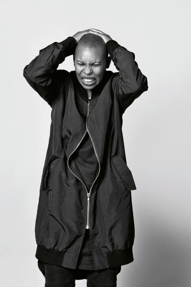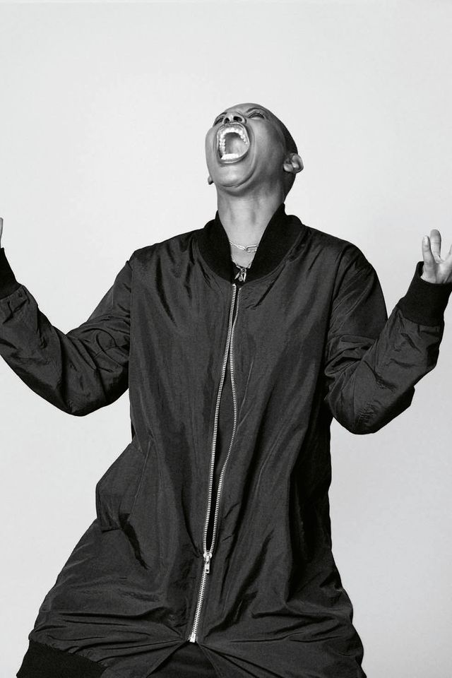 Die Sängerin der Band Skunk Anansie wohnt praktisch um die Ecke, doch zum Fototermin in London kommt sie eine halbe Stunde zu spät. »Ich war mir sicher, wo es war, in meinem Kopf war es nur woanders«, sagt sie und steigt von ihrem Roller. Eigentlich müsste Skin die Konzerthalle Village Underground in Shoreditch kennen, hier stand sie auch schon mal auf der Bühne, aber es ist ein paar Jahre her. Ihr Song Hedonism (Just Because You Feel Good) wurde Mitte der Neunzigerjahre ein weltweiter Hit, auf Youtube reißen die begeisterten Kommentare bis heute nicht ab: »Ihre Stimme ist so herzzerreißend« oder »Nicht viele Menschen können glatzköpfig und gleichzeitig schön sein.« Nach einigen Jahren Pause ist ihre Band seit zehn Jahren wieder vereint. Und Skin, die feministische, bisexuelle Rebellin, ist immer noch das, was man eine klassische Frontfrau nennt: sehr präsent, sehr exaltiert, mal zornig, mal leise und melancholisch treibt sie jede Emotion ungefiltert auf die Spitze – auf der Bühne genauso wie vor unserer Kamera. Nach unserer letzten Frage führt sie übrigens gleich das nächste Interview, diesmal mit Worten – in fließendem Italienisch. Gerade ist zum 25-jährigen Jubiläum von Skunk Anansie das Live-Doppelalbum 25LIVE@25 erschienen.