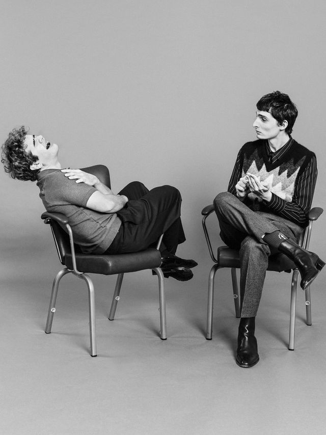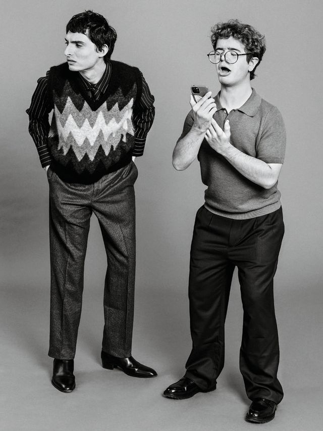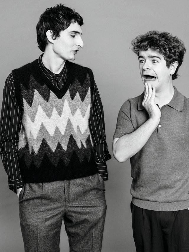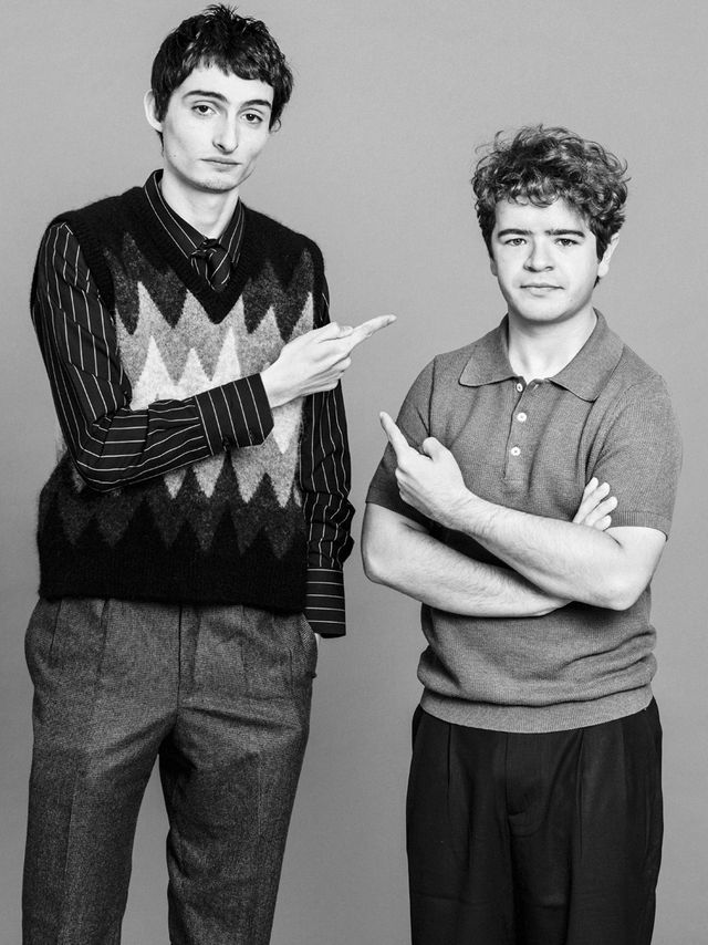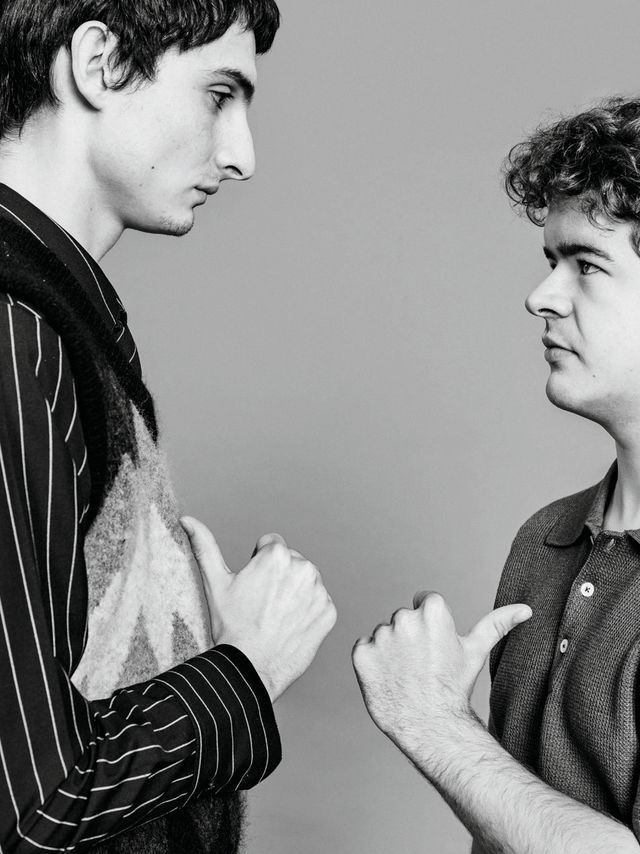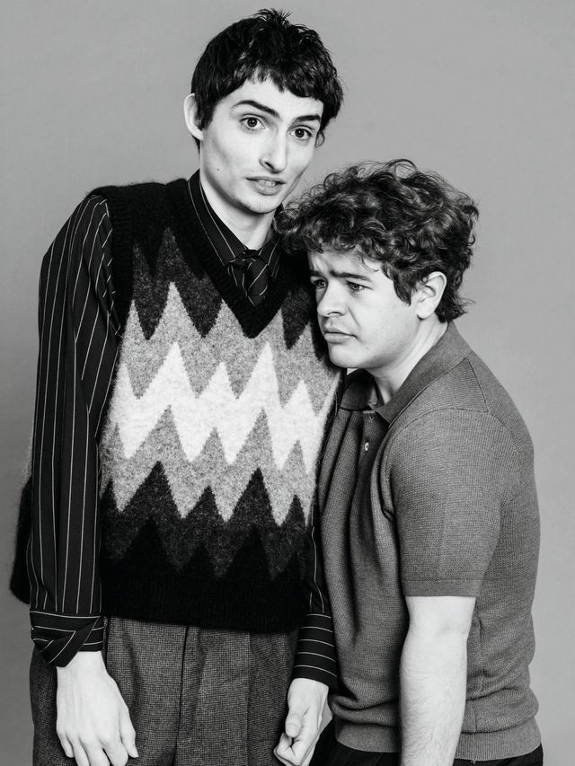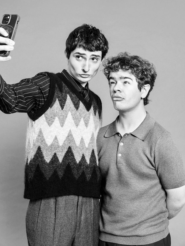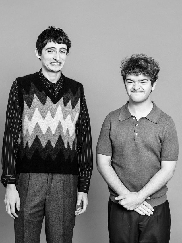 Bei der Oscar-Verleihung im März 2026 wird es zum ersten Mal einen Preis in der Kategorie »Bestes Casting« geben. Und das zu Recht. Eine Nominierung verdient hätte etwa Carmen Cuba, die etwa 2016 fünf Elf- bis 14-Jährige als Hauptfiguren der vielgelobten Serie Stranger Things castete. Wie schafft man es, fünf junge Menschen zu finden, die so gut vor der Kamera als Team funktionieren – und das auch neun Jahre später zur finalen Staffel (derzeit auf Netflix)? Bei Finn Wolfhard und Gaten Matarazzo, die wir an einem sehr kurz getakteten Besuch in Berlin treffen, hat das gekonnte Casting direkt noch eine echte Freundschaft hervorgebracht, die beiden haben sogar eine Zeit lang zusammengewohnt. Die Umarmung auf dem Foto unten ist also keine Show-Umarmung, sondern Ausdruck echter Zuneigung. Beim Foto unten in der Mitte dagegen vermuten wir eine teilweise Vorspiegelung falscher Tatsachen, da Gaten Matarazzo zumindest bei unseren Fotoaufnahmen der Lustigere war, Finn Wolfhard zurückhaltender. Beide bekommen von der Fotografin aber das Attribut: »Total feine Typen, mit denen man um die Häuser ziehen würde, wirklich 0,0 Starallüren.« Wir wollten von den beiden auch wissen, was sie über den derzeitigen Zustand der USA denken, die Frage wurde aber von der amerikanischen PR-Begleitperson resolut unterbrochen. Darauf durften sie nicht antworten.