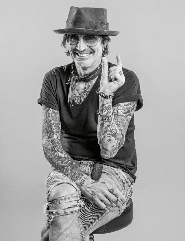 Im Film The Wrestler klagt Randy Robinson, gespielt von Mickey Rourke, die Achtziger seien musikalisch eine so unbeschwerte Zeit gewesen, und dann habe dieser depressive Grunge alles kaputtgemacht. Sein Gegenüber stimmt zu und ergänzt: »Like there’s something wrong with just wanting to have a good time.« Spaß ohne schlechtes Gewissen oder moralische Skrupel, diesen Hedonismus verkörperte keine Band glaubwürdiger als Mötley Crüe – mit unvergesslichen Hymnen wie Girls, Girls, Girls oder Looks That Kill. Vor allem ihr Schlagzeuger Tommy Lee, der sein Instrument auch mal kopfüber traktierte, lag abwechselnd auf einer Liege im Krankenwagen, einer Pritsche im Knast und mit Groupies auf dem King-Size-Bett eines Luxushotels. Klar, dass er ein paar Jahre lang mit Pamela Anderson verheiratet war, klar, dass er heute nicht mehr danach gefragt werden will, klar, dass er inzwischen einigermaßen geläutert und natürlich Vegetarier ist, weil irgendwann auch die schönste Party zu Ende ist. Beim Fototermin in Los Angeles war er nicht nur charmant, sondern vor allem selbstironisch. Er scheint es ganz gut hinzukriegen, älter (und ein bisschen ruhiger) zu werden, ohne den Rock ’n’ Roll zu verraten. Im Herbst ist sein neues Soloalbum mit dem Titel Andro erschienen.
