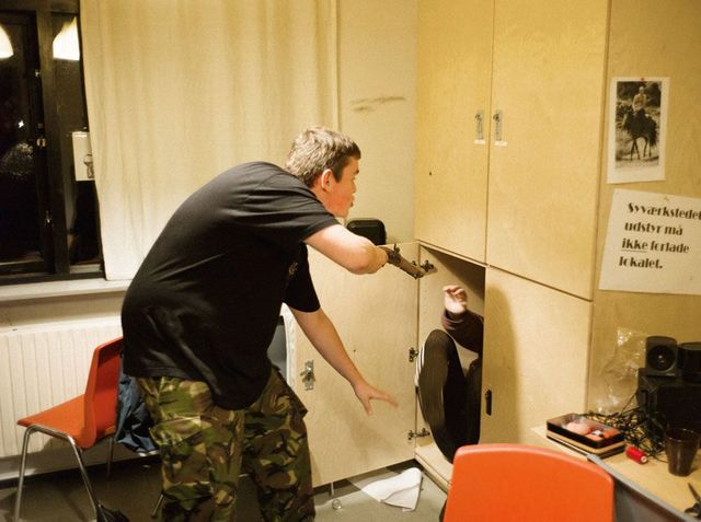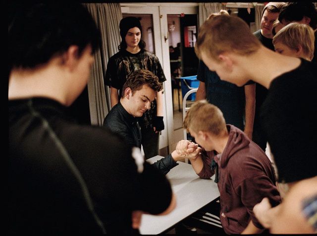 Thea, 17, klingt im Gespräch älter, erwachsener, als sie ist. Das gilt für viele Schüler hier. Gleichzeitig hat man das Gefühl, dass die Jugendlichen den Kinderspaß nachholen, der ihnen früher verdorben wurde. Abends, auf den Fluren, muss man aufpassen, nicht von 18-Jährigen umgerannt zu werden, die einander mit Wasserpistolen jagen. Man begegnet Emo-Mädchen mit schlumpfblau gefärbten Haaren und Jungs wie Mads, einem Heavy-Metal-Fan mit einem stachelbesetzten Lederband um den Hals, der sich bei Live-Rollenspielen am liebsten als Gladiator oder Ork verkleidet. In den Sommerferien, erzählt Mads, bastele er Monsterkostüme aus Schaumstoff, Latex und echtem Lammfell. Was draußen als uncool gilt, ist hier normal. In der Rollenspielschule halten auch Jungs Händchen.