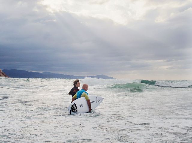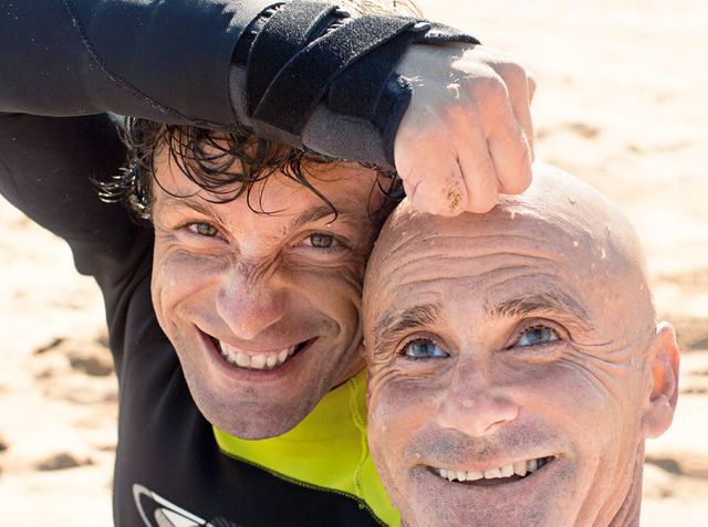 Axi hilft Gallo seit dem Unfall nicht nur beim Surfen. Er organisiert seinen Umzug vom Haus in den Bergen hinunter in eine Stadtwohnung, er schleppt Kisten, baut Möbel auf, schleift Kanten ab und spachtelt Löcher zu. »MacGyver« ist in seinem Element. Für ihre erste gemeinsame Laufeinheit bastelt er aus elastischen Sportbändern eine Konstruktion, einer Handschelle gleich, durch die Gallo und er miteinander verbunden sind. Im Synchronschritt laufen sie den Berg hinauf. Natürlich geht es wie früher darum, dass Axi fit bleibt. Aber das Training ist heute auch ein Training für Gallo. Er lernt diese Welt an der baskischen Küste, die er besser kennt als jeder andere, mit Axis Hilfe neu kennen. Für ihre nächtlichen Schwimmeinheiten überlegen sie sich Zeichen und Signale. Axi sagt: »Dass er mir so vertraut, berührt mich.« Früher waren sie Lehrer und Schüler. Was sie jetzt sind? »Zwei Freunde, die surfen«, sagt Axi. »Ein richtiger Freund ist für mich jemand, dem ich nicht täglich begegnen muss, bei dem ich aber das Gefühl habe, dass er immer da wäre, wenn irgendwas ist«, sagt Gallo.