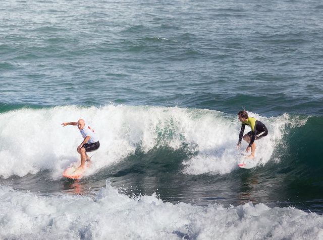 Stimmen heute alle Faktoren, schwimmt er los, den Wellen entgegen, und richtet sich mit einer Sicherheit auf, wie sie nur Menschen haben können, die ihr Leben auf einem Board verbracht haben. Technisch gesehen braucht er keine Hilfe zum Surfen, trotzdem geht Gallo nur äußerst selten allein ins Wasser. Erst neulich ist er mit einem anderen Surfer zusammengestoßen, der ihn übersehen hatte. Ihre Bretter prallten aufeinander, das von Gallo brach in der Mitte durch. Es hätte auch schlimmer kommen können. »Brett auf Brett – Materialschaden. Brett auf Körper – Totalschaden«, sagt Gallo. Am einfachsten ist es, wenn Axi mit im Wasser ist und ruft. »Gallo, va!« Los, Gallo. Dem Urteil seines besten Schülers kann er trauen. Axi sieht die Wellen, wie Gallo sie einst gesehen hat. Befindet Axi eine Welle für gut, dann ist sie gut für Gallo. Wann immer es der Terminplan erlaubt, nehmen sie sich Zeit zum gemeinsamen Surfen, nur so, zum Spaß. Oft passiert das nicht, vielleicht drei, vier Mal im Monat. Aber sie surfen öfter zusammen, als sie es tun würden, wenn Gallo nicht erblindet wäre.