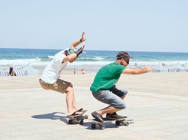 Zur Hochsaison dreht sich in Zarautz alles ums Surfen. Überall liegen Bretter in den Schaufenstern, schwarze Tafeln, mit Kreide beschriftet, werben für Einstiegskurse. »In den letzten Jahren ist ein richtiger Boom ausgebrochen«, sagt Gallo. »Früher waren wir nur ein paar Freaks am Strand, heute surft jeder.« Er muss nicht erwähnen, dass ihn das stolz macht, seine Stimme verrät es. Das Surfen brachte sich Gallo in den Achtzigern selbst bei. In Irun, nahe der französischen Grenze, gab es eine Fabrik, die Bretter herstellte, hauptsächlich für den Export. Irgendwann landete so ein Ding in Zarautz, Gallo weiß nicht mehr, wie es in seine Hände gelangte. Zwei Jahre lang versuchte er, damit einen sandigen Abhang hinunterzufahren, bis ihm eines Tages amerikanische Touristen erklärten, das Brett sei fürs Wasser gemacht. Gallo, der Skater, kam von da an nur noch zum Essen und Schlafen aus dem Meer.