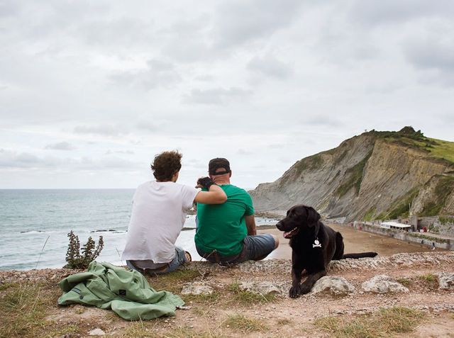 Der Strand ist inzwischen schon gut gefüllt. Axi und Gallo verabschieden sich. Auf Baskisch, der Sprache, in der sie die meiste Zeit miteinander reden. »Agur«, bis später. Auf dem Weg zur Behandlung läuft Gallo die Hauptstraße von Zarautz entlang, parallel zum Meer. Geführt wird er von Jazz, dem Blindenhund, der Gallo an allen Passanten vorbeimanövriert. Weit kommen die zwei trotzdem nicht. Ein Bärtiger mit Surfbrett unter dem Arm hält sie an. Was läuft? Alles klar? Gallo ist hier jedem bekannt.