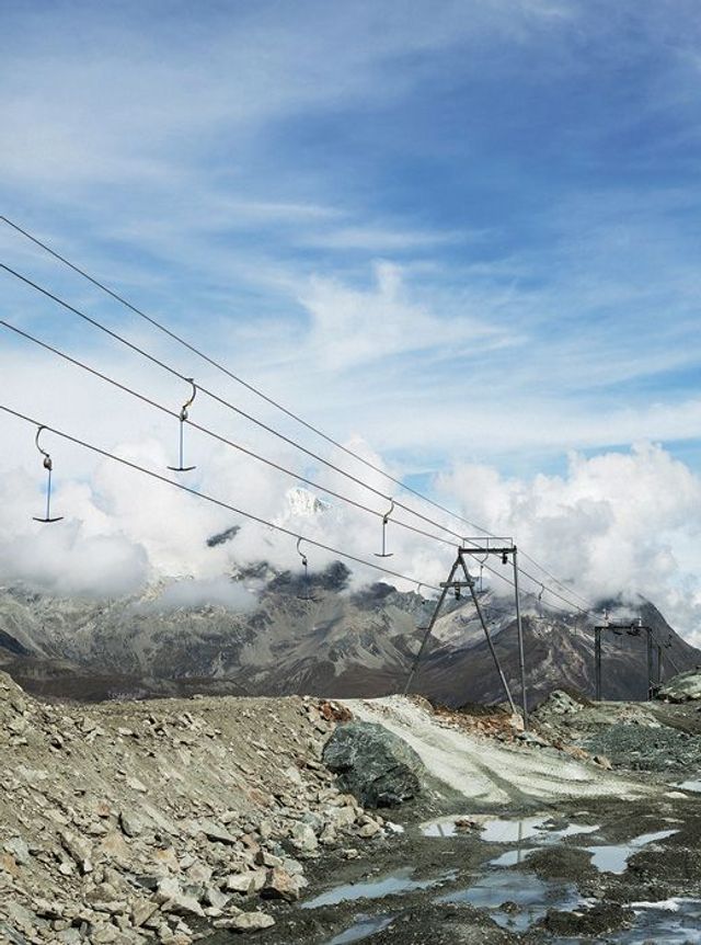 Sie steigen eine Station vor dem Gipfel aus der Gondel, dort, wo einst der Gletscher endete. Inzwischen schmilzt seine Zunge im Sommer knapp einen Kilometer hangaufwärts, und die Station der Seilbahn steht in der Ödnis der Geröllfelder wie eine Mondbasis – ein Betonbau, umlagert von im Fels versenkten Werkstätten. Die Arbeiter schwärmen aus. Zurück bleibt ein hagerer Mann mit zerfurchtem Gesicht. Das ist ihr Schneimeister, Raoul Biner.