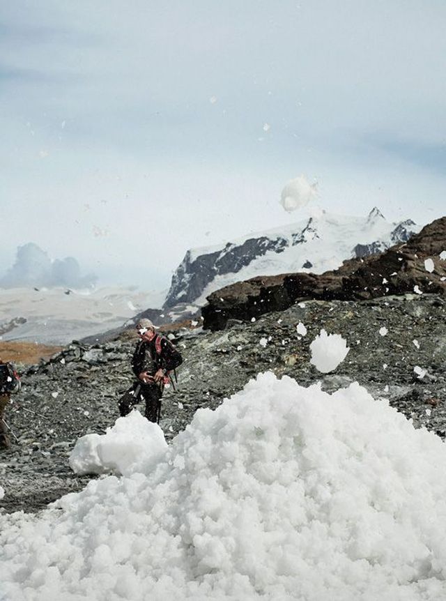 Sie brechen mit der Sonne auf, der Meister und zwanzig Mann. Dorf und Tal dösen noch im Schatten der Berge, als die Gondel aus der Station schwingt und an Stahltrossen emporsteigt. Die Arbeiter stehen schweigend an den Fenstern. Almwiesen. Bergwald. Geröllfelder. Dann trifft sie das Licht. Die Sonne ist stark diesen Morgen. An den Hängen blitzen Flecken von Firnschnee auf, und ringsum gleißen die Gipfel. Am Fuß der Alpen gehen Menschen an diesem Tag im September ein letztes Mal schwimmen. Am Matterhorn werfen sie das erste Mal ihre Maschine für den Winter an. Sie müssen Schnee machen.