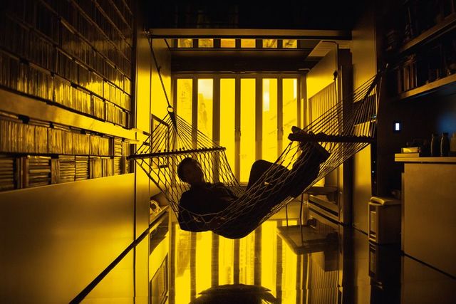 Chang erklärt: »Die Leute in Hongkong fühlen sich wie im Gefängnis. Wir müssen Möglichkeiten finden, auf engstem Raum miteinander zu leben.« Changs Rezept gegen die Platznot heißt: Räume transformieren. Sein Apartment funktioniert wie eine menschengroße Brieftasche. Alles kann weggeklappt werden. Auch die Wandeinheiten selbst können verschoben werden, die Wände hängen in Stahlschienen an der Decke. Man muss wissen, wie man die Module ausklappt, um das Apartment zu verwandeln – in Küche, Bücherei, Büro, Wäschezimmer, Ankleidezimmer, Gym, Videospielraum mit großer Leinwand, Bad, Musikzimmer mit wandhohem CD-Regal, Esszimmer und Bar. Auch auf Badewanne, Dampfbad und beheizte Klobrille muss Chang nicht verzichten. Ein Gästebett hängt über der Badewanne.