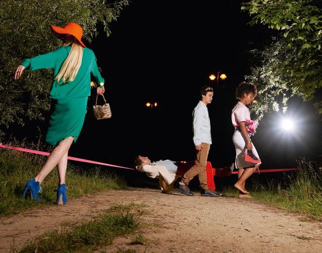 Den eigenen Schwerpunkt finden - und am Himmel den Großen Bären. Von links: Seidenkleid: Hermès; Hut: Schumacher; Pumps: Rupert Sanderson; Tasche: Coccinelle. Helles Sakko: Herr von Eden; Hemd: Joop; rote Hose: Bottega Veneta. Haarreif: Dimitri; Hemd: Cos; Hose: Burberry; Schnürschuhe: Vladimir Karaleev. Bluse: Jil Sander; Rock: Lacoste, Tasche: Christopher Kane, gesehen bei mytheresa.com; Plateauschuhe: H&M.