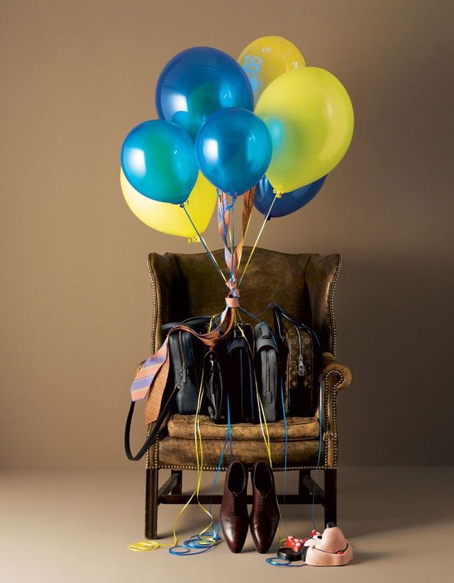 Der Angeber. Krawatten von Hermès; Aktentaschen von links nach rechts: Jil Sander, Giorgio Armani, Prada und die letzten beiden Louis Vuitton; Schuhe von Louis Vuitton.
