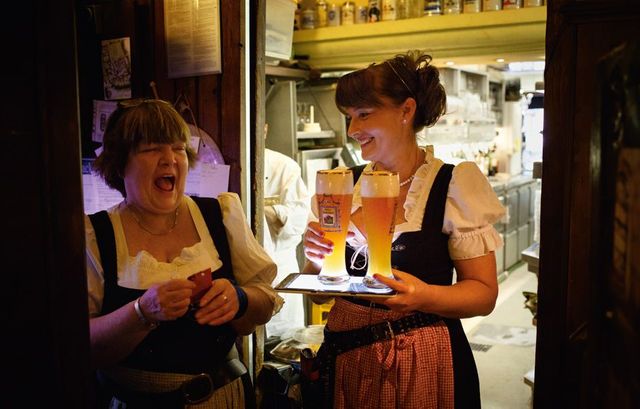 Manuela Bartels, »Hackerhaus« »Gott sei Dank ist dieses Ding wasserdicht, denn so ein frisch gezapftes Weißbier macht schon eine ordentliche Sauerei. Aber viel zu klein! Wenn es hier richtig losgeht, werden ja nicht nur zwei Bier bestellt. Und Maßkrüge passen auf so ein Tablet ja gar nicht drauf - müssen sie aber auch nicht, denn die trägt man eh besser mit den Händen. Am besten geht’s so: Beide Hände voller Krüge, so viele Griffe, wie man irgendwie zu fassen kriegt. Und dann: Das Ganze fest an die Brust drücken, wie ein Kuscheltier. So kann ich zehn Krüge tragen, meine Kolleginnen auf dem Oktoberfest schaffen fast zwanzig.« Das extrem robuste Fujitsu Arrows Tab Q582/F (ab 1000 Euro), mit dem Manuela Bartels hier serviert, ist staub- und wasserfest. Gut für Bauarbeiter - und Menschen mit Kindern am Strand.