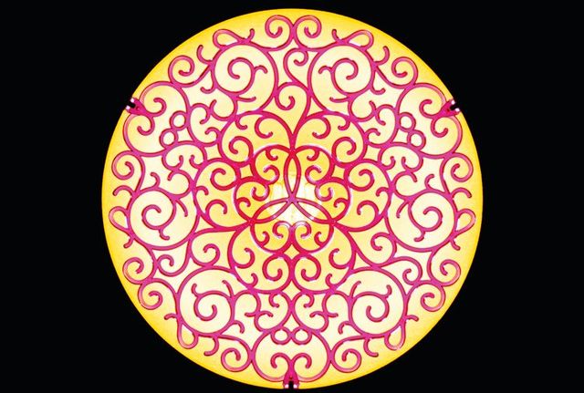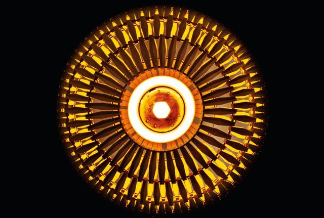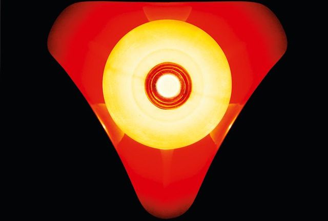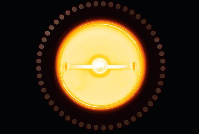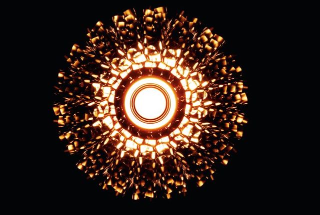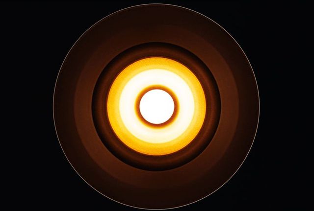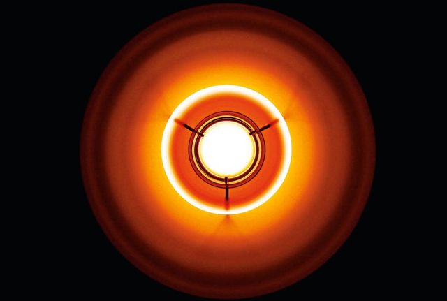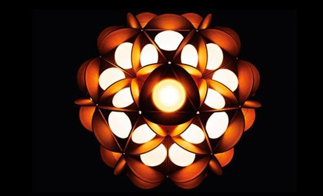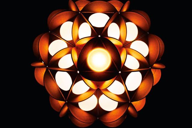 Lampen können zu Kunstwerken werden, sobald man das Licht anmacht. Das zeigt sich besonders eindrucksvoll, wenn man ihnen direkt ins Auge sieht – so wie unser Fotograf, der sie für uns ins Visir nahm. Hier: »Zita« von Molto Luce