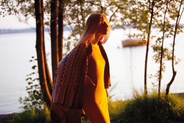 Noch einmal im goldenen Licht baden...Badeanzug von Dolce&Gabbana;Strickjacke von Lacoste.