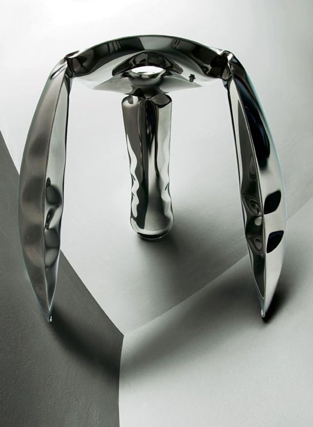 27. Mai 2010Aus Heft 21/2010Stil lebenHinter den SpiegelnMeistens umgeben uns Möbel mit stiller Eleganz. Aber manchmal gibt es welche, die uns die Sprache verschlagen: sechs surreale Meisterwerke. StartEin Tisch ist ein Tisch? Von diesem hier scheint nur das verwehte Tuch geblieben: Phantom von GRAFT für Stilwerk; www.stilwerk-designgallery.com.Als hätte jemand die Webmaschine auf Warp-Antrieb umgestellt: Perserteppich von Richard Hutten für I+I; www.i-and-i-it.Kann man Edelstahl aufblasen wie einen Schwimmreifen? Ja, man kann: Hocker Plopp von Oskar Zieta für HAY; www.magazin.com.Leuchte 2D LED Table von Ding 3000 für Skitsch sieht aus, als hätte Dalí sie entworfen; www.skitsch.it.Regal Cabana könnte auch eine Indiohütte sein. Von Fernando und Humberto Campana für Edra; www.edra.com.Sturm im Brennofen: Vase Blow Away von Front Design für Moooi in klassisch handbemaltem Delfter Porzellan; www.moooi.com. Vorheriges Bild Nächstes Bild Fotos: Hubertus Hamm Rechte am Artikel können Sie hier erwerben. Aus Heft 21/2010Stil lebenMöbelStartseite > Themen > Stil leben > Hinter den Spiegeln