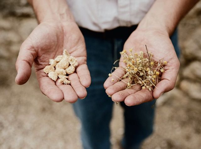 Guillaume Ferronis Pastis schmeckt intensiver als der industriell hergestellte von Ricard oder Pernod, in den nur getrocknete Kräuter gelangen, das ist selbst beim teuren Edel-Pastis »Henri Bardoin« der Fall. Ferroni verwendet nur frische Kräuter, ein halbe Stunde nach dem Zupfen liegen sie schon in Alkohol. Er macht auch kein Geheimnis aus den Zutaten, bei ihm sind es nur heimische: Absinth, Myrte, Thymian, wilder Fenchel, großer und kleiner Oregano, grüne Minze, Pfefferminze, Salbei, Lorbeer, Majoran, Rosmarin, Kamille, Melisse, Ysop (das kommt auch in den Chartreuse) und Serpolet, Sand-Thymian. Sogar von Anis und Lakritz hat er eine französische Unterart gefunden, die in seinem Beet wächst. Er verwendet nur gute Blätter. Die schlechten sowie die Stängel wandern in den Kompost. Denn natürlich ist bei Ferroni alles bio und ungespritzt.