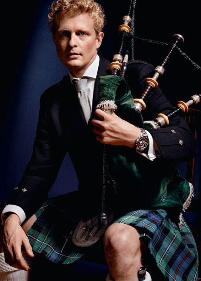 Allen Grace, Dudelsack Bis man überhaupt einen Ton auf einem Dudelsack herausbringt, vergehen ungefähr zwei Jahre, erzählt Allen Grace. Zum Glück liegt diese Zeit hinter ihm: Der Australier spielt schon, seitdem er acht Jahre alt ist, derzeit bei den »Claymore Pipes and Drums«. Ihren nächsten Auftritt haben die Musiker zur St. Patrick’s Day Parade am 17. März in München, die vom Odeonsplatz zur Münchner Freiheit führt. Am Arm trägt Allen Grace den »Carrera Calibre 16«-Automatik-Chronographen von TAG Heuer.