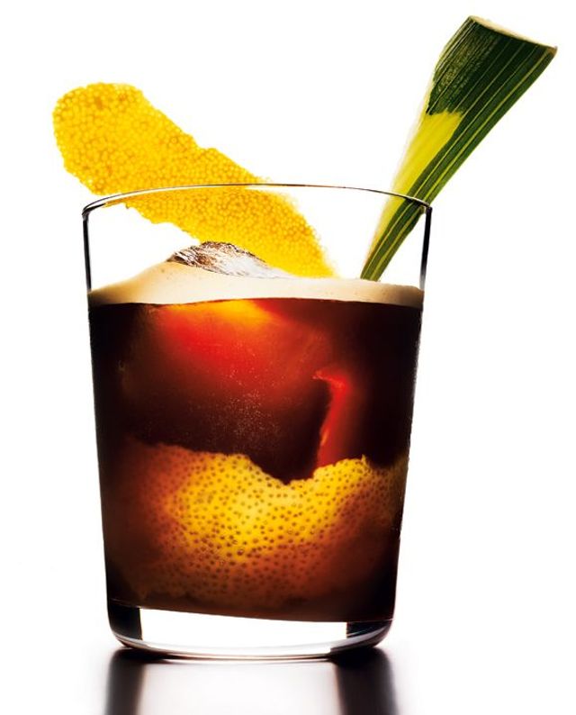 Café de Paris, »Schumann’s Version 2011«: 1 doppelter Espresso, 1,5 cl Triple Sec, 1 cl Absinth, 1 Barlöffel Zucker, Zitronenschale, Orangenschale, 1 fingerlanges Stück Fenchel, blanchiert. Espresso, Triple Sec, Absinth und Zucker im Shaker auf zerstoßenem Eis kräftig schütteln und in ein kleines Becherglas auf zwei Eiswürfel abseihen. Zitronen-, Orangenschale und Fenchel dazugeben.